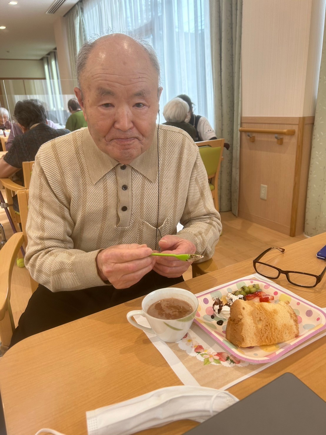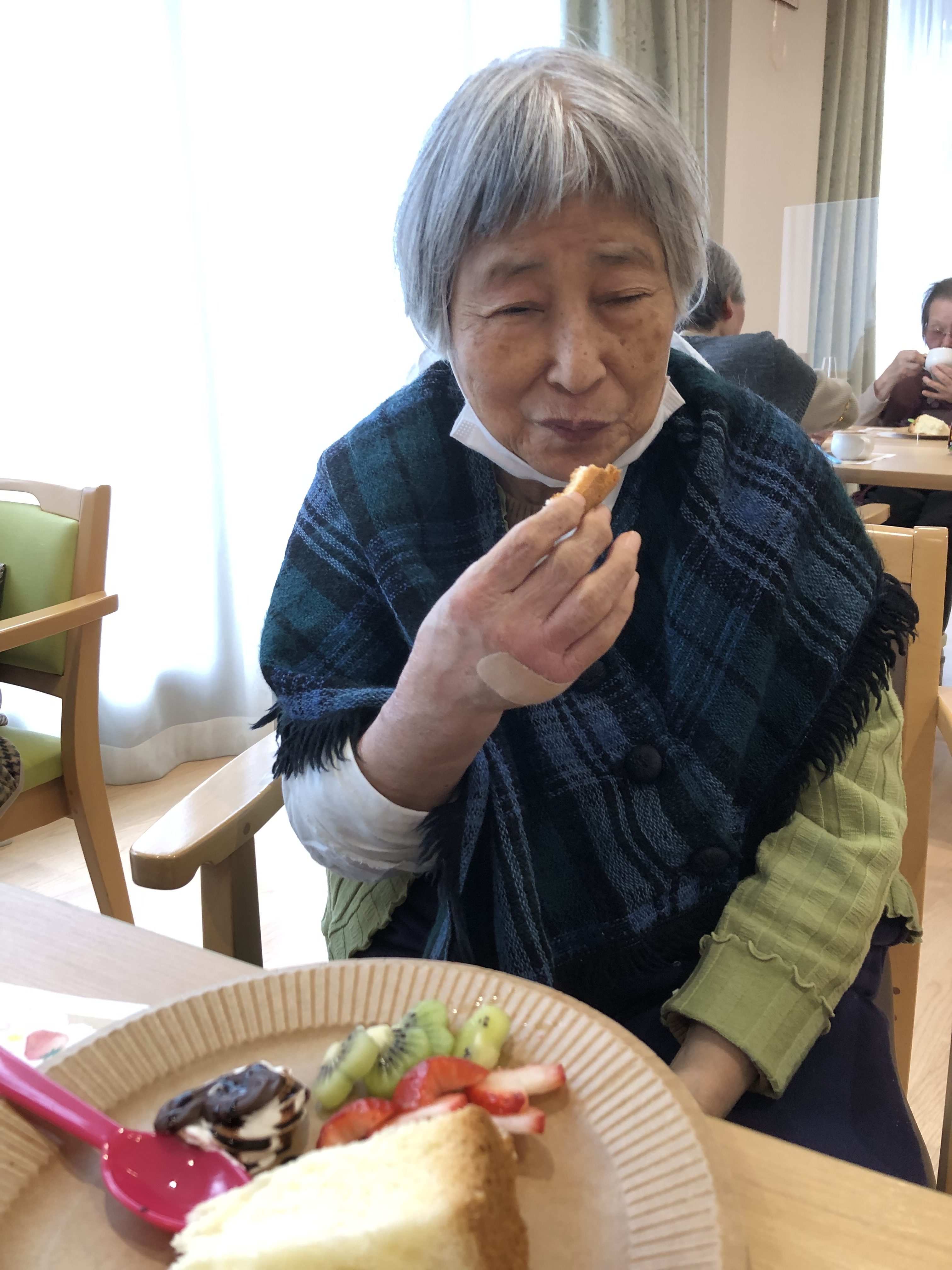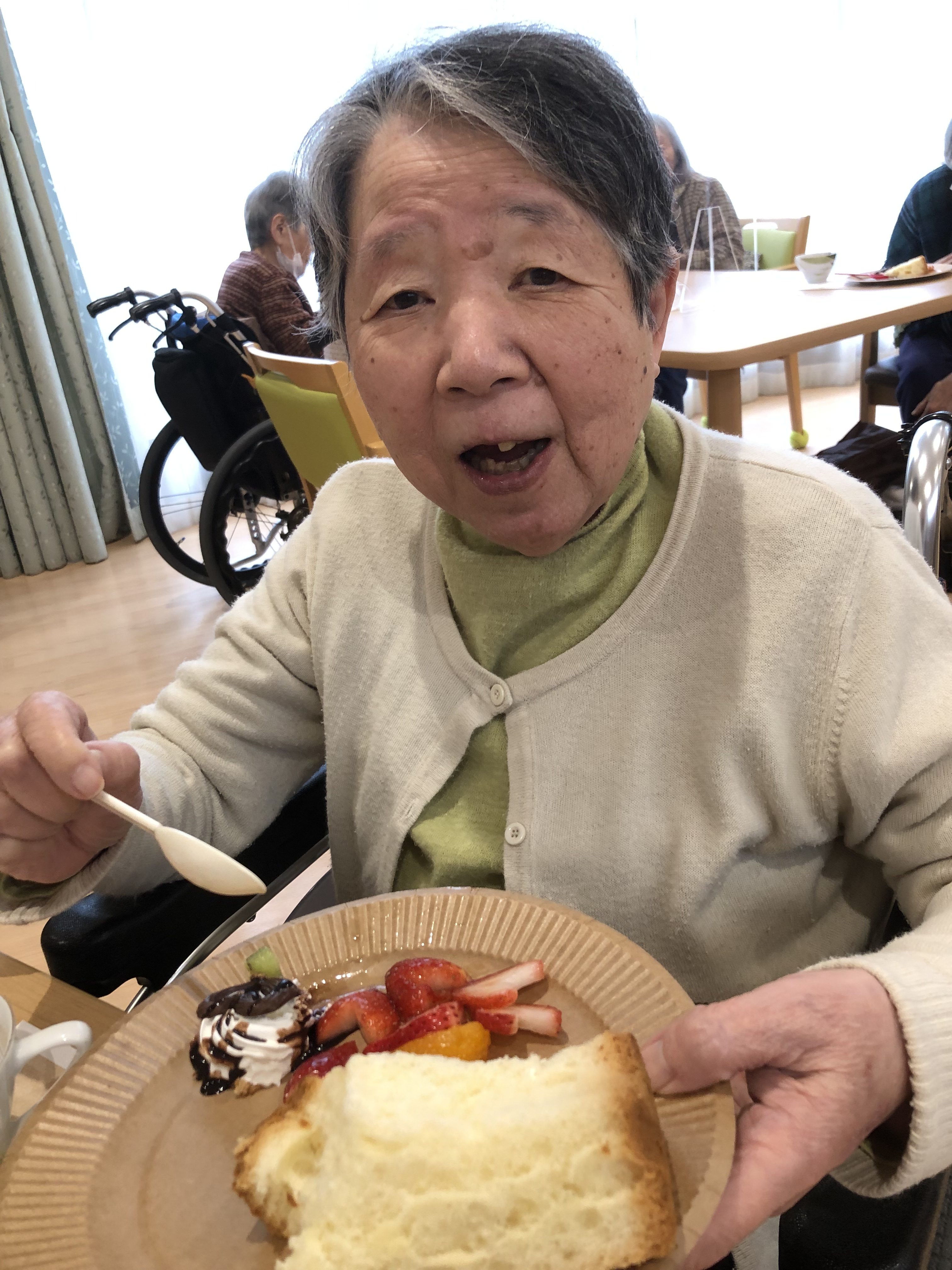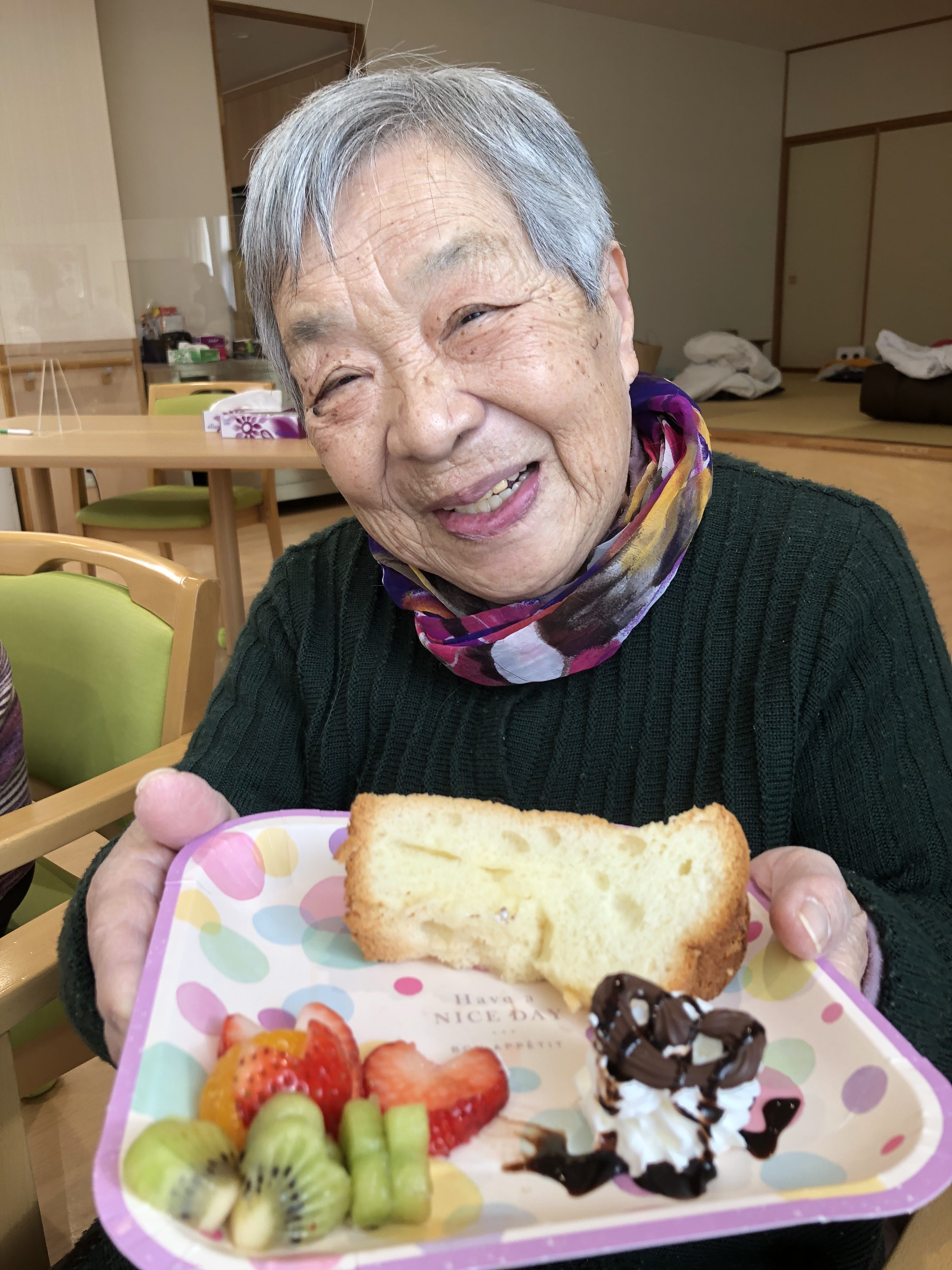 ふわふわのシフォンケーキとハート形のフルーツを召し上がっていただきました💖