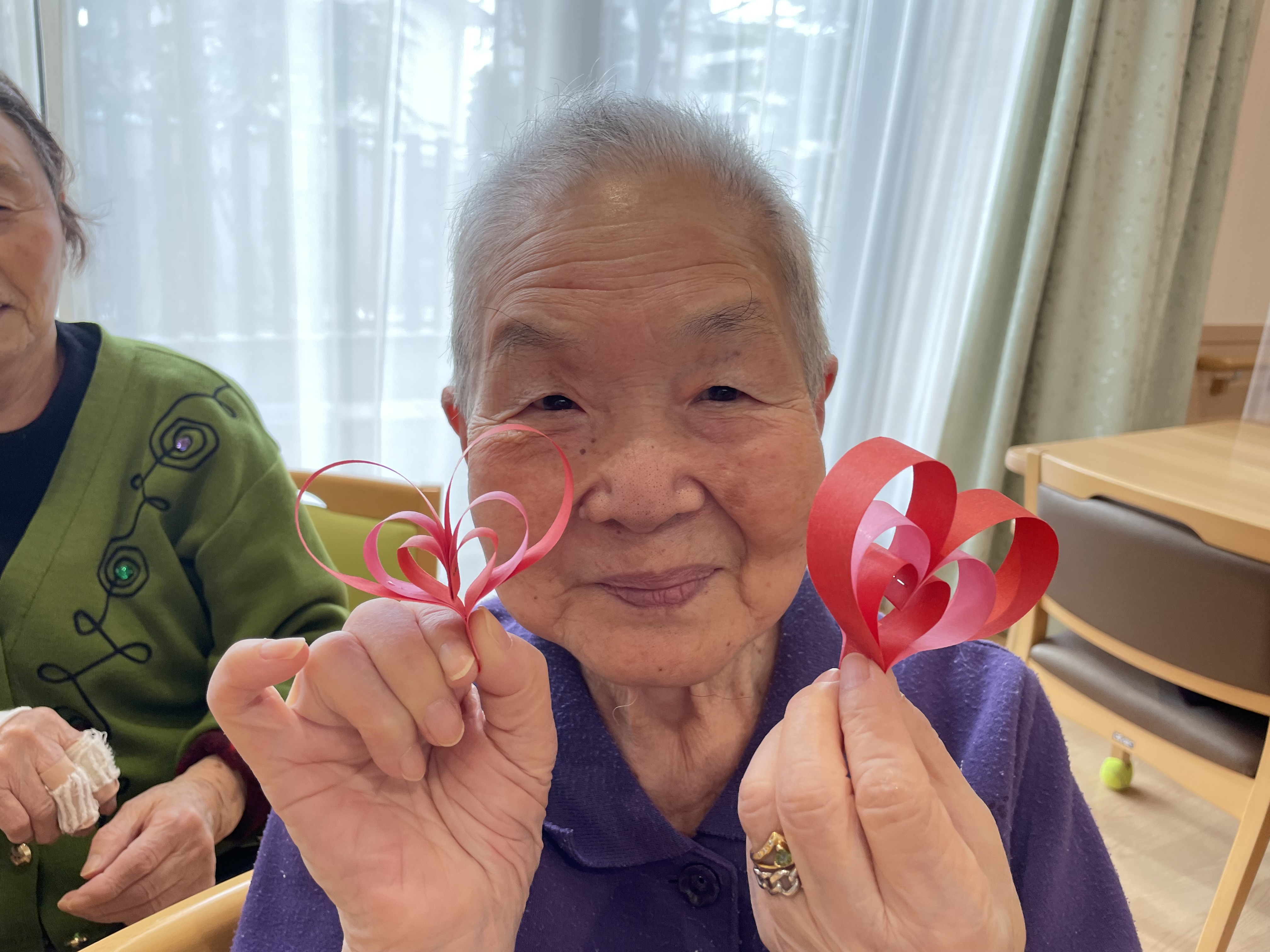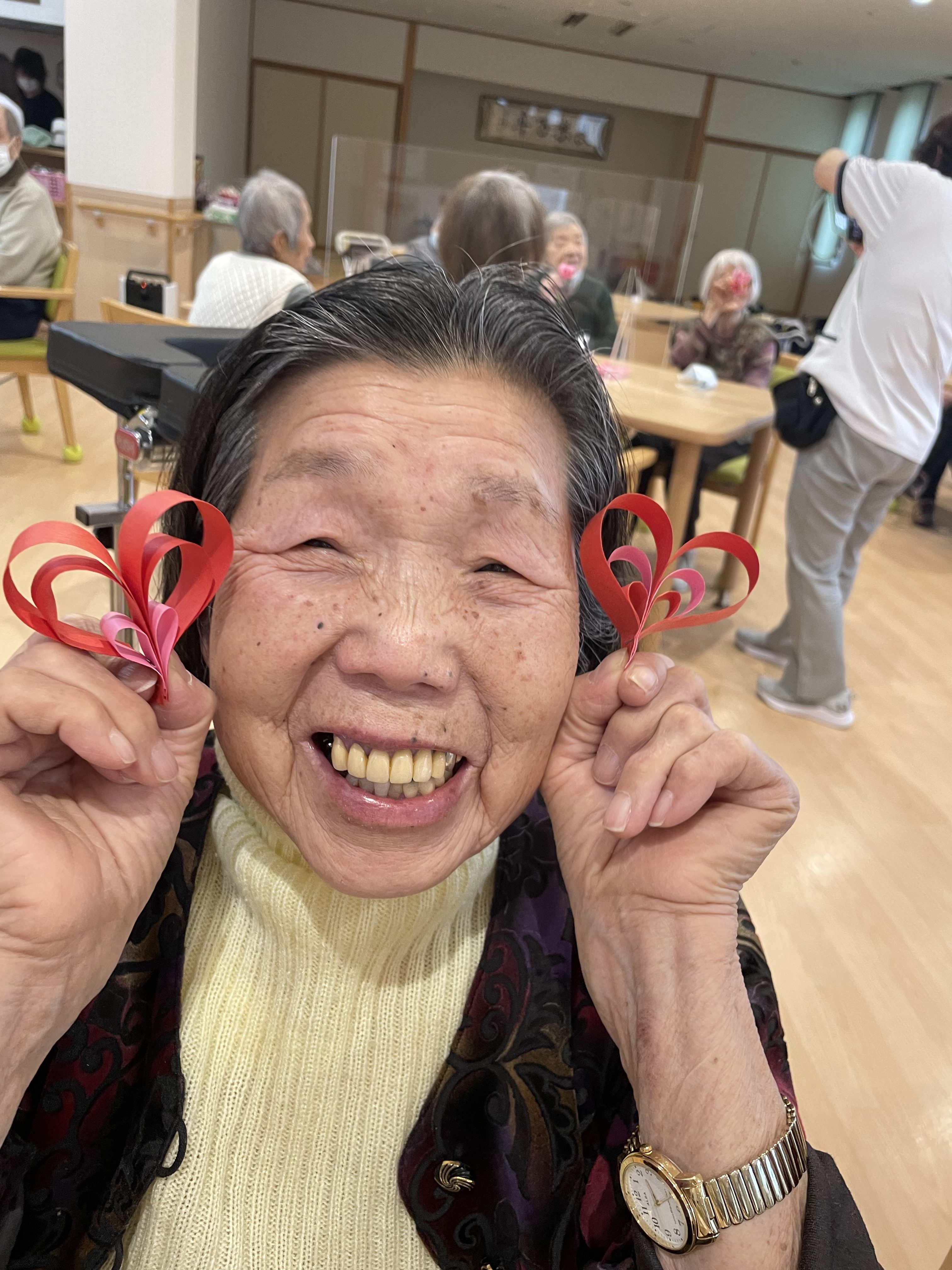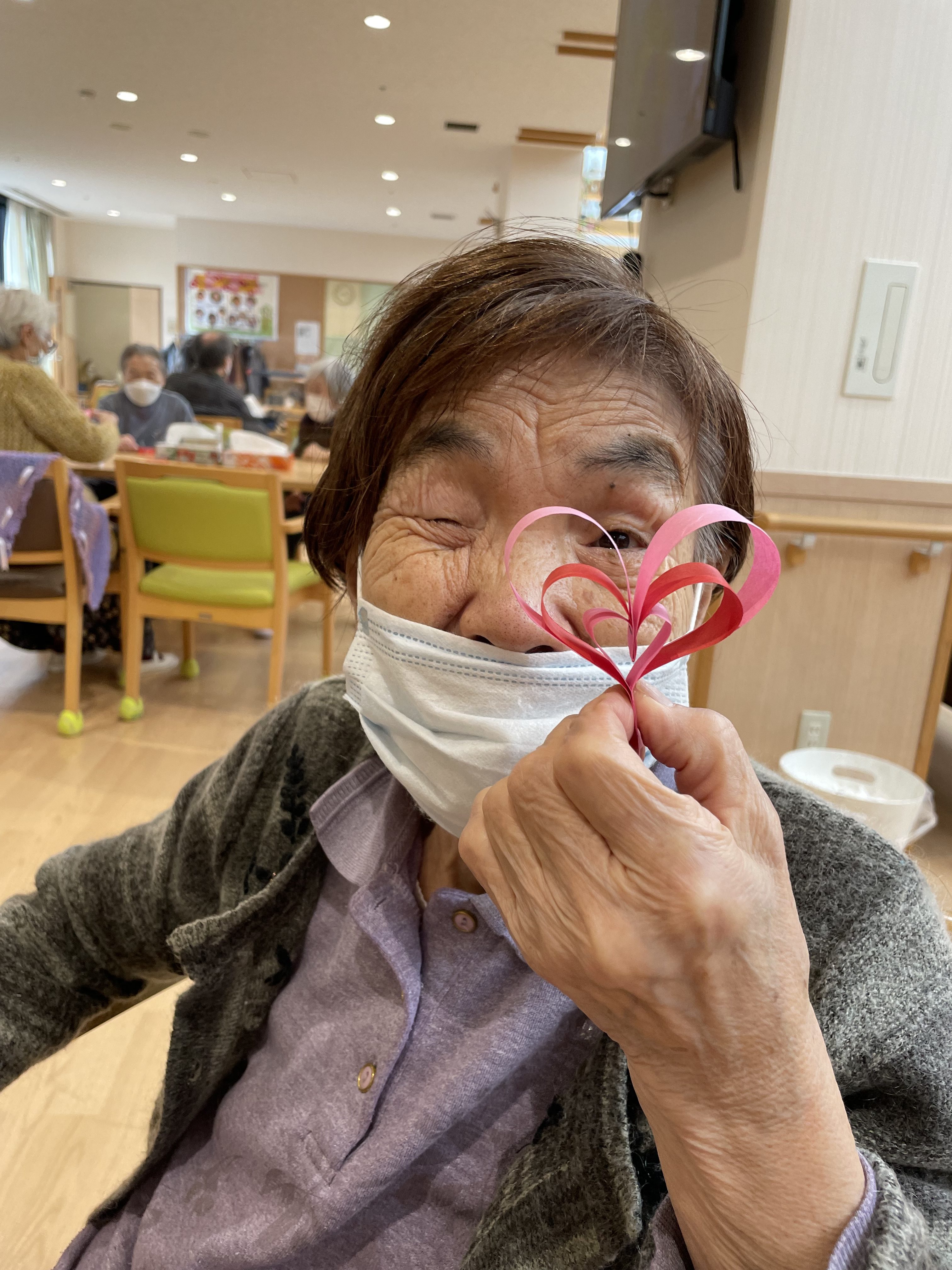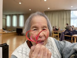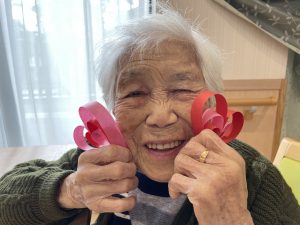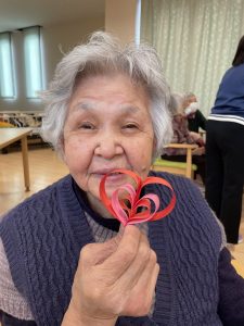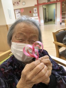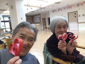 今年は、皆さんにかわいいハートのモビール飾りを作って頂きました!