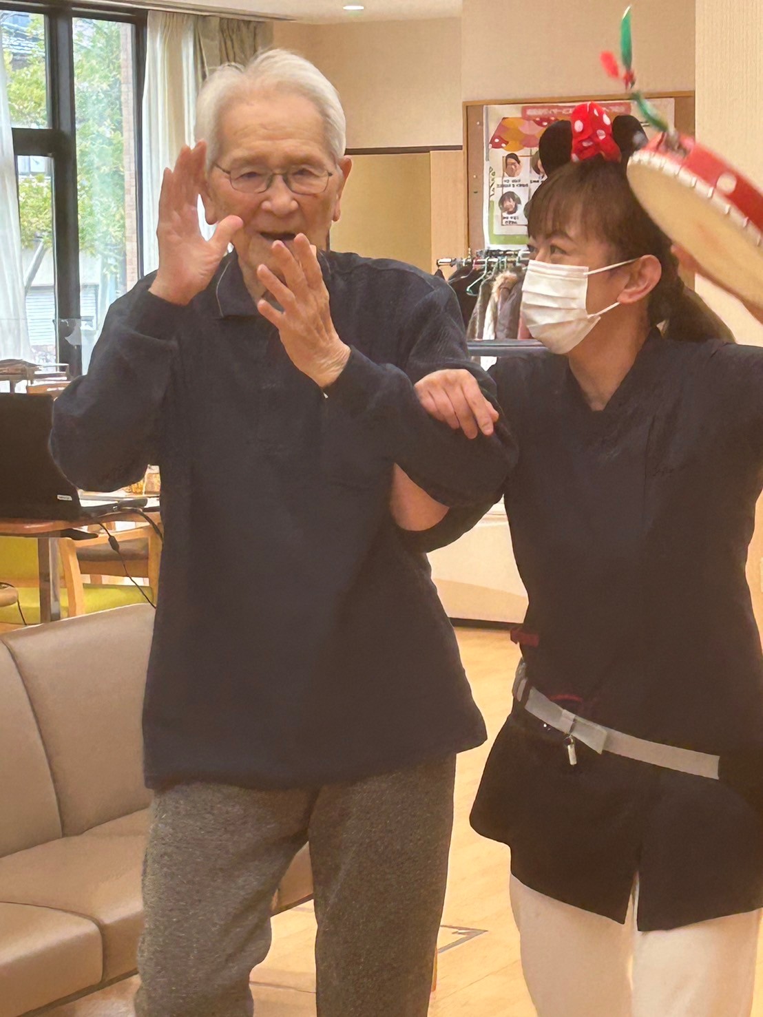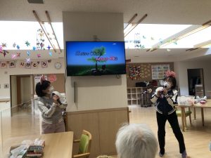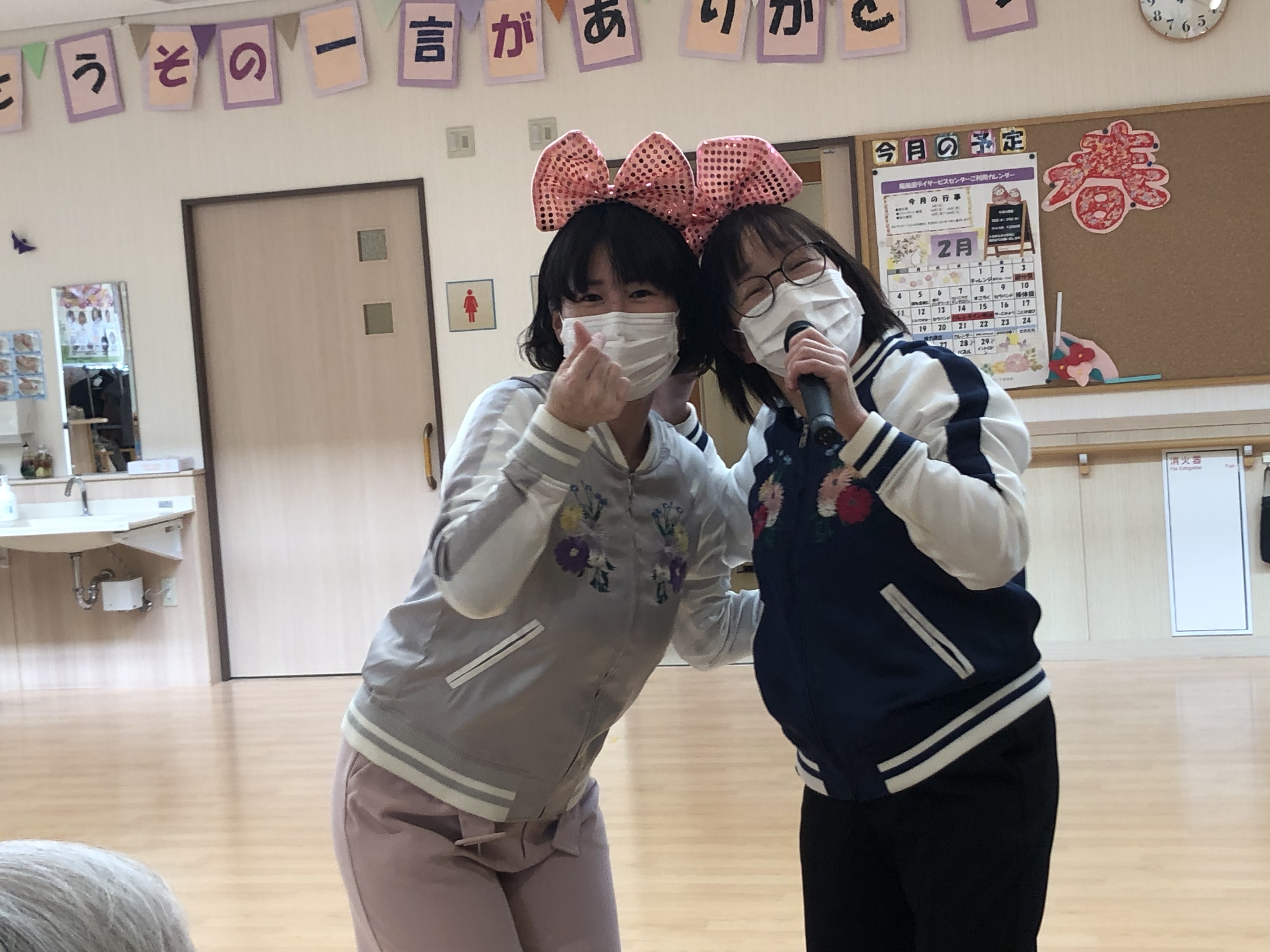 職員も、かわいい格好に変身し、デュエットを披露♬