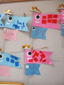 今日はお家に、みんなが作った鯉のぼりも持ち帰ります。