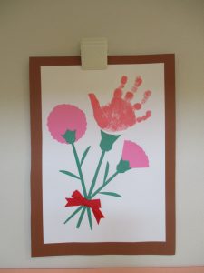 親子で母の日の製作もしました。可愛いお手てのカーネーションです。