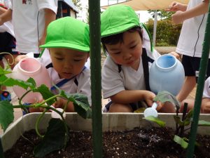 さくら組は、ピーマンと茄子ときゅうり。