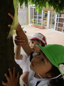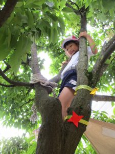 園庭では木登り遊びが楽しいです。