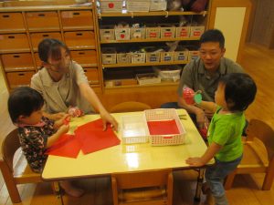 お家の方と一緒に製作あそびもしました。
