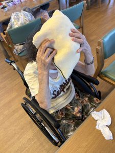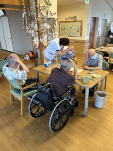 ただ、このあと・・・椅子に戻れない事件勃発💦職員が順番に身体を支えて安全に戻りました。
