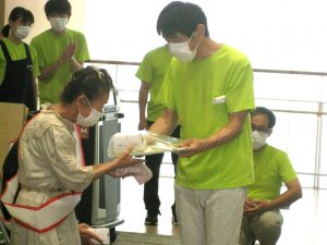 傘寿(80歳)おめでとうございます。 記念品の贈呈です。