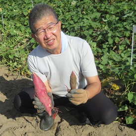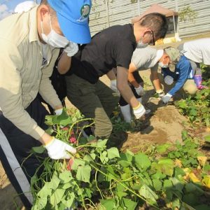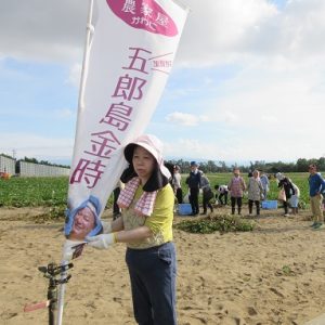 先月、粟崎町の「かわに」さんで五郎島金時の収穫体験をしました。