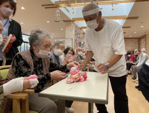 最後は、皆さんに参加賞をお渡しさせていただき、紅白饅頭と温かいお茶でまったりしていただきました。