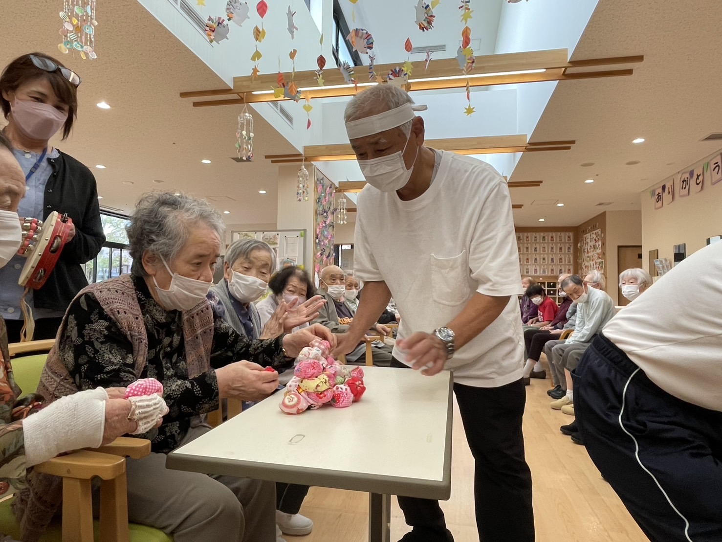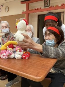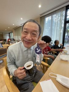 最後は、皆さんに参加賞をお渡しさせていただき、紅白饅頭と温かいお茶でまったりしていただきました。