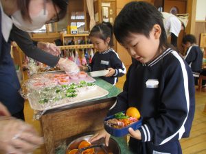 みんなといつも一緒に食べている同じメニューの給食もそれぞれのお弁当箱にいれるとまたなんだか違う給食に見えますね。