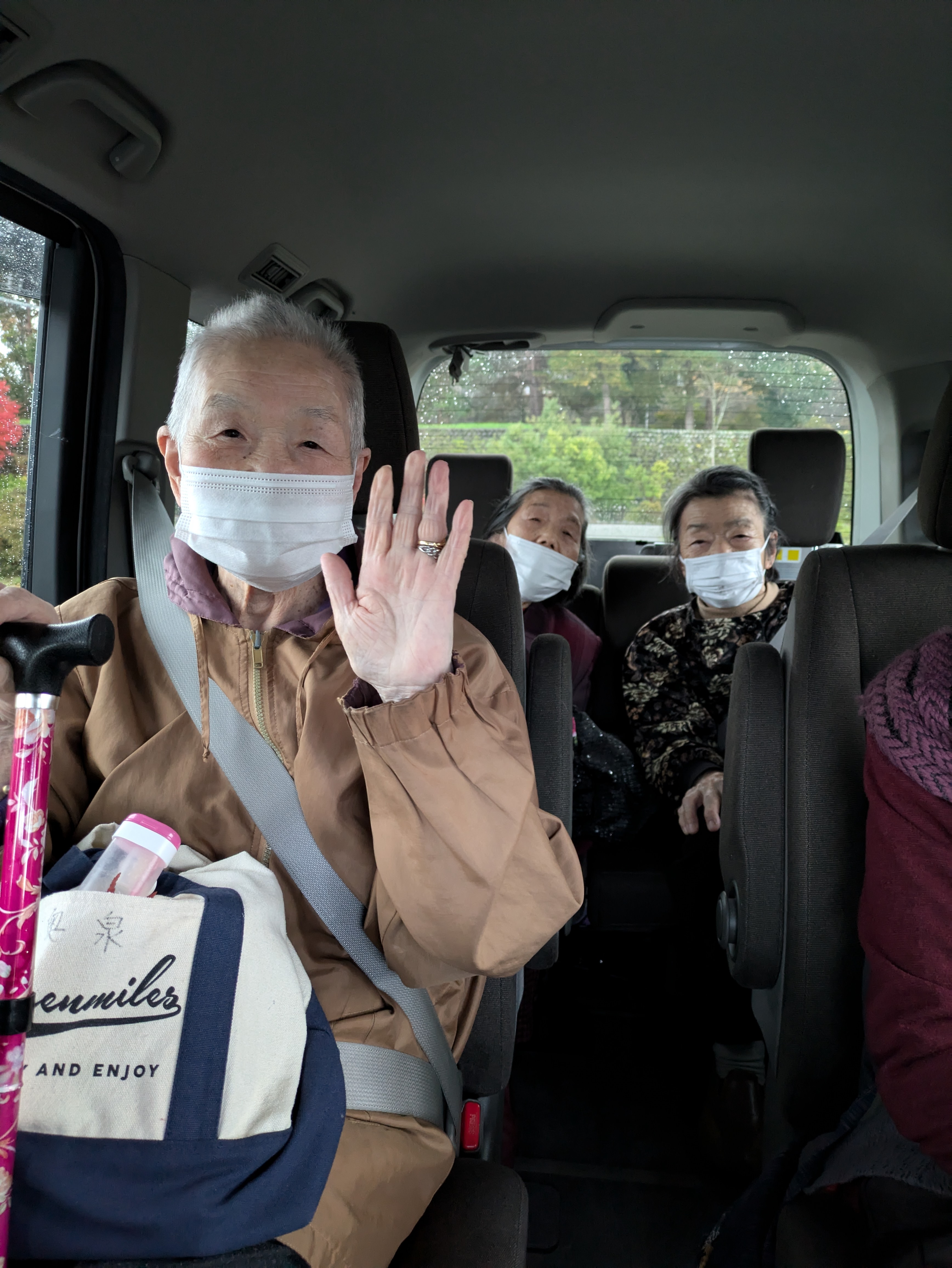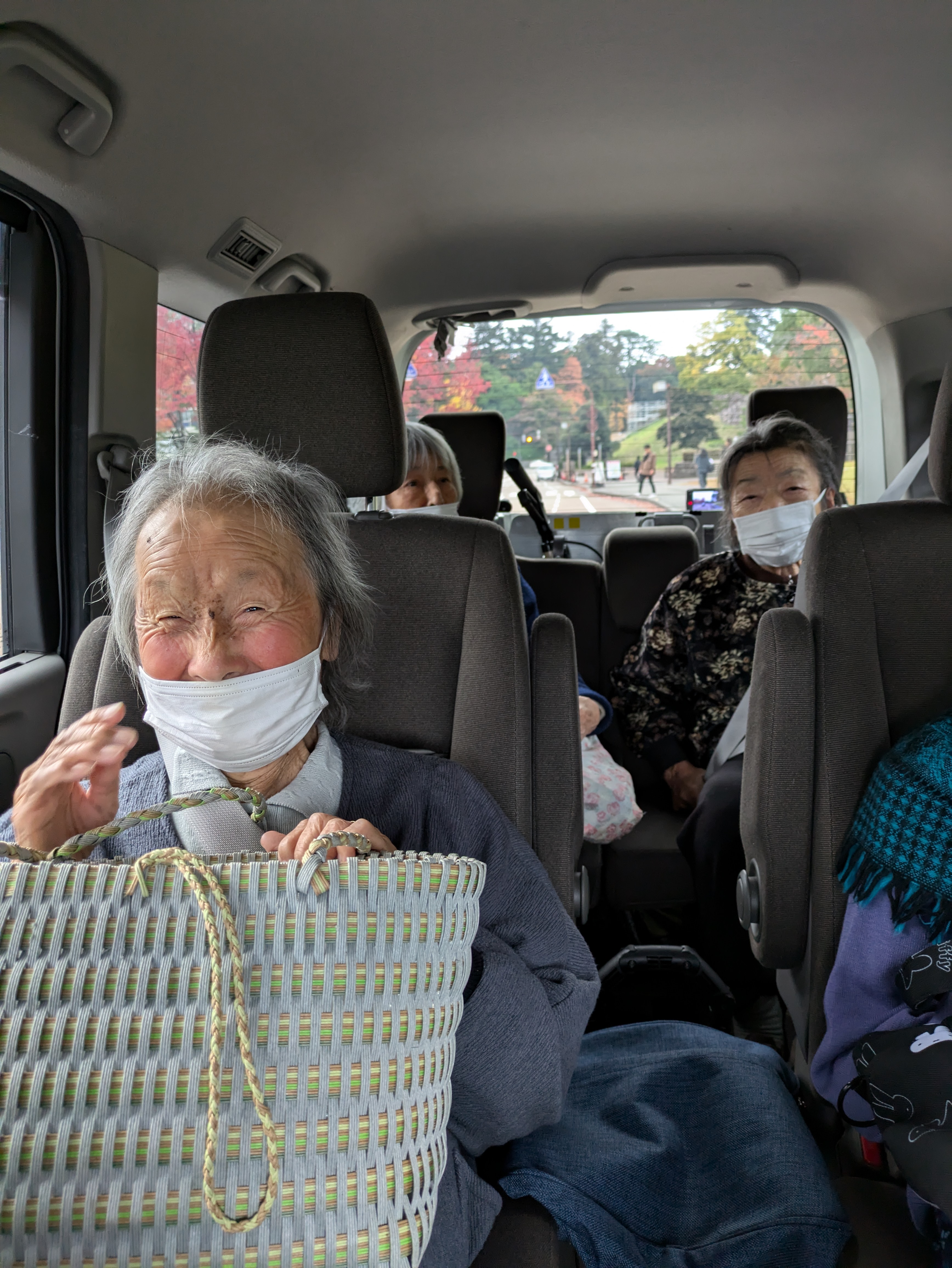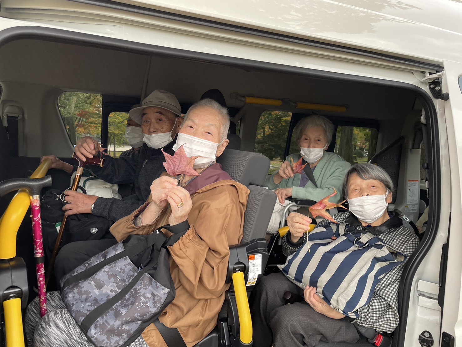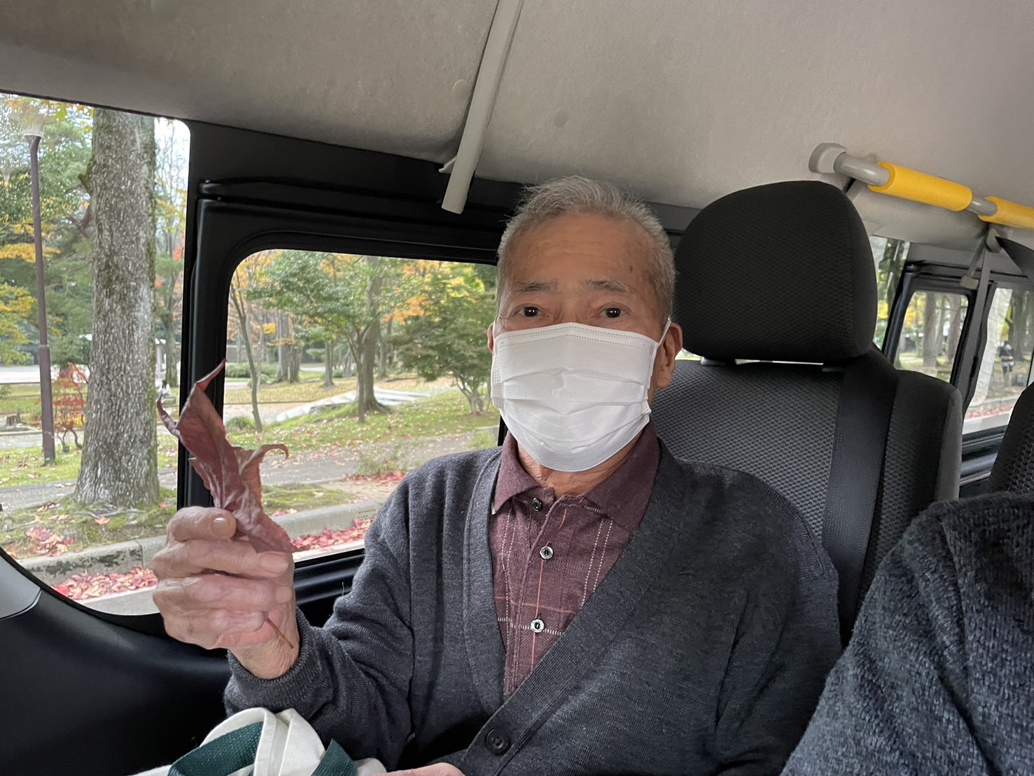紅葉ドライブ🚙 陽風園デイサービスセンター2024年11月30日 今年も紅葉ドライブに行ってきました🚙 太陽が丘や広坂方面、川沿いの道をドライブし、秋の風景をご覧いただきました🍁 真っ赤に染まったアメリカ楓通りや黄金色のメタセ大通り、雨の日、晴れの日、それぞれの秋の風景を車窓からご覧いただきました🍁