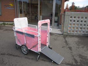 この度、一般財団法人篠原欣子記念財団様から助成をいただき、避難車を購入させていただきました。