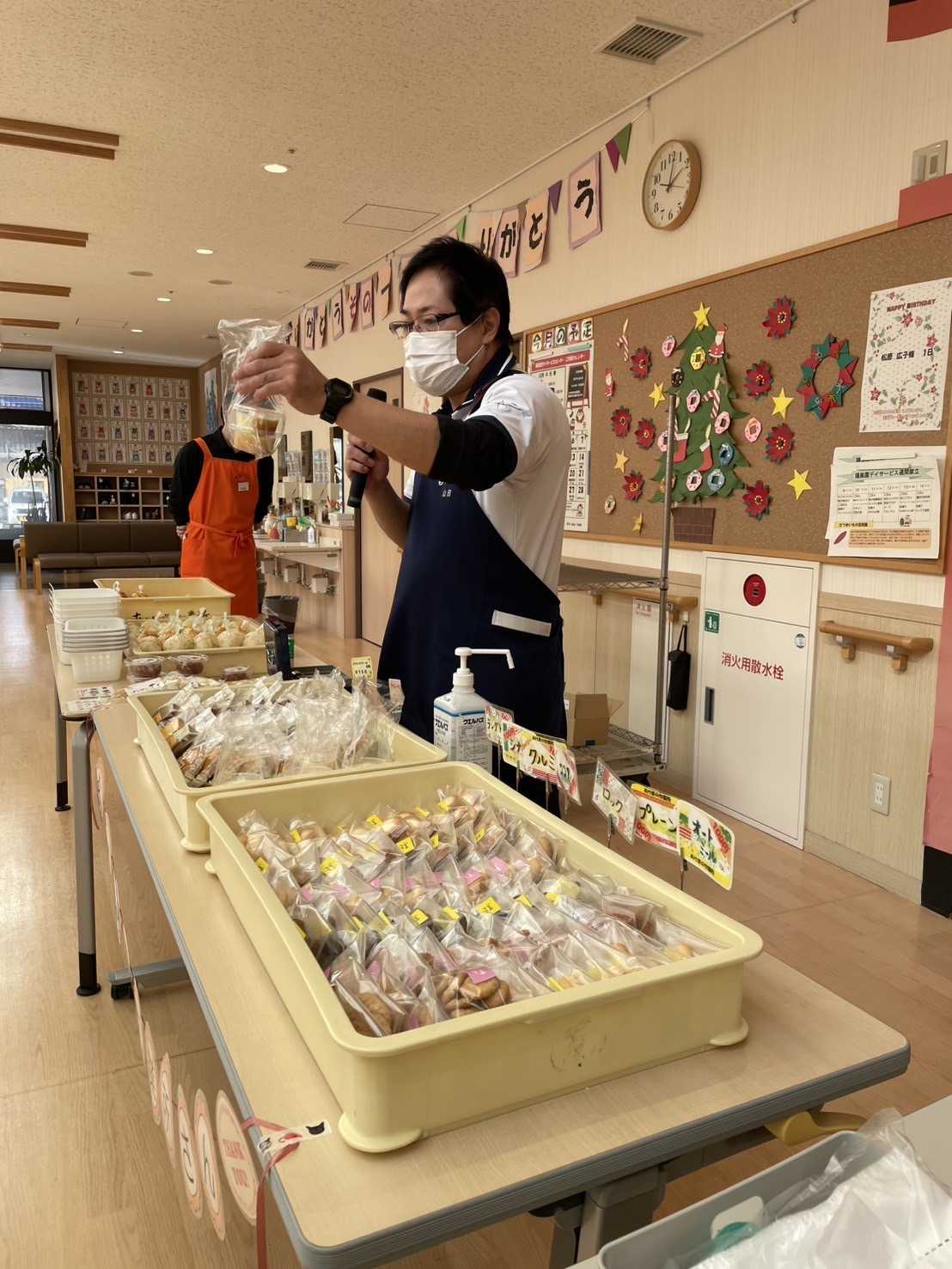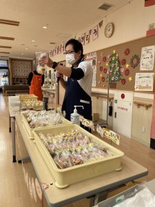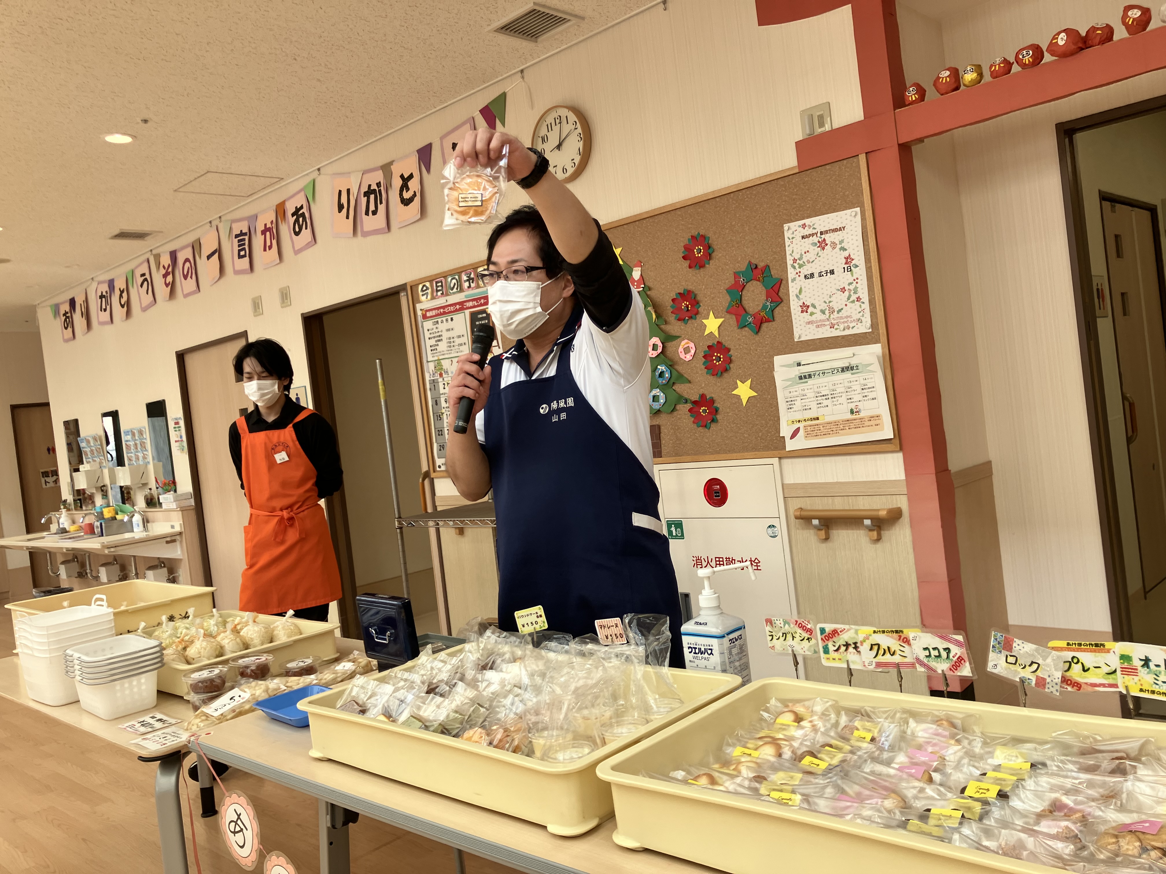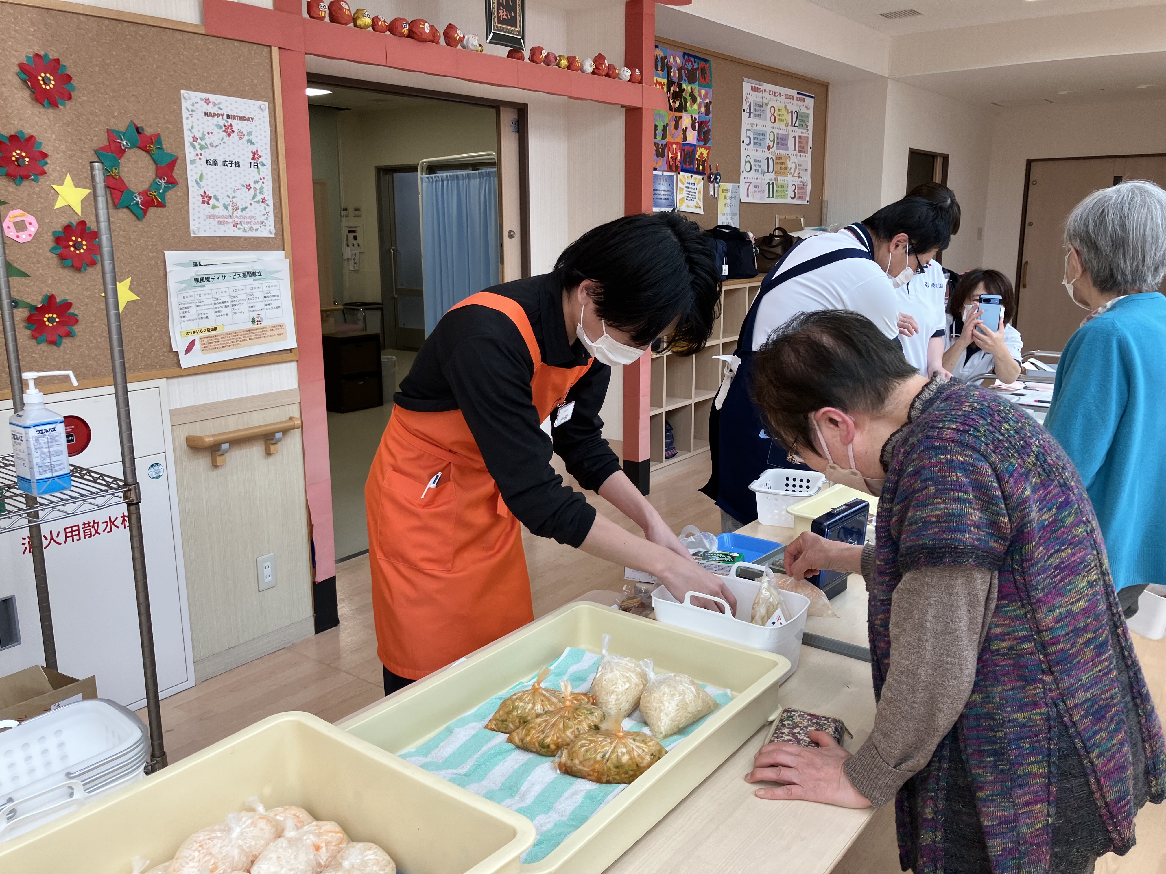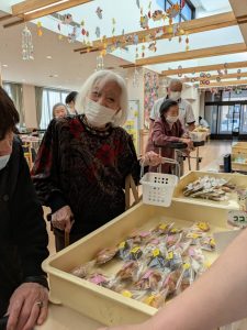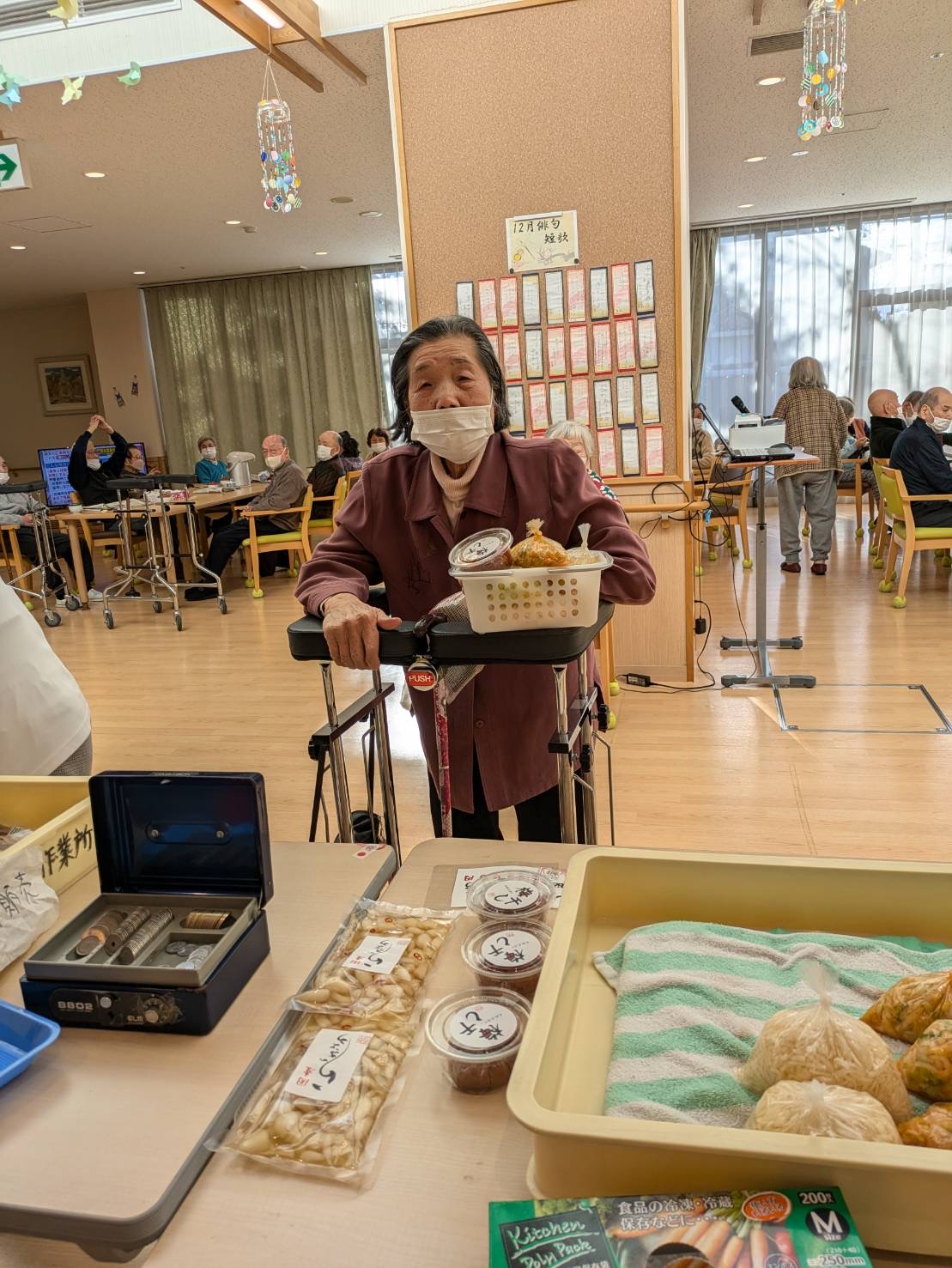 あけぼの作業所 出張販売 陽風園デイサービスセンター2024年12月18日 今月は、あけぼの作業所さんの出張販売がありました! 今回も、美味しいお漬物と焼き菓子、ケーキもご用意いただき、皆さんお財布を手に今か今かと、お待ちのご様子でした🍰 買い物順のくじ引きにも、力が入り「いいの引いてや!!」「1番やった!!」「残り物には福がある!」と大盛り上がり!! おススメの商品も伺い、順番にお買い物です👛 選ぶ楽しみ、買う楽しみ、笑顔たくさんの、出張販売でした🍰 あけぼの作業所さん、ありがとうございました😊💖