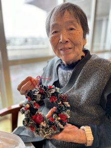 先日皆さんが頑張って作ったクリスマスリース🎄
