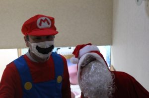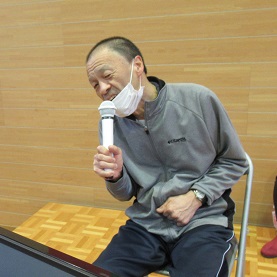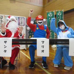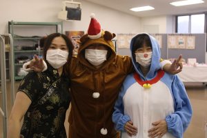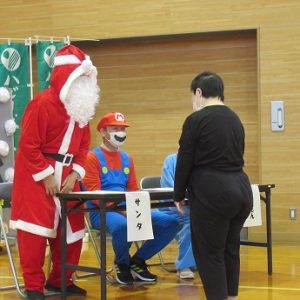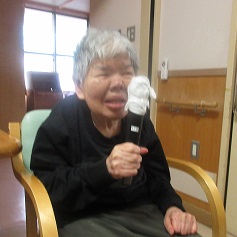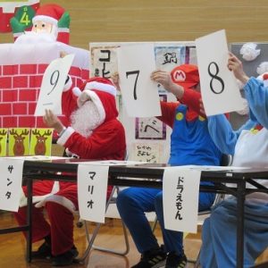 午後からのカラオケ大会では、施設長らがサンタクロースなどに扮して審査員を務め、ユーモアたっぷりのコメントで会場を盛り上げました。