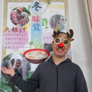 また喫茶コーナーでは、定番のクリスマスケーキの他に、今年は農耕班の皆さまが丹精込めて育てた大根や白菜を使った「大根汁」も振舞われました。