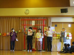 その後はおせち料理の由来を給食先生から聞いてお昼は黒豆、紅白なますなどお正月のお料理をいただきました。