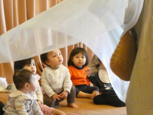 0~3歳児の会と4~5歳児の会の2回公演でしたがどちらもとっても素敵な時間で子どもたちは、お人形の動きと様々な楽器に夢中で演者の方々との会話も楽しんでいました。