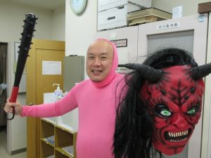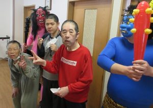 今年は大人も青ざめる本格的な鬼に扮した職員が各ユニットや作業室に現れ、