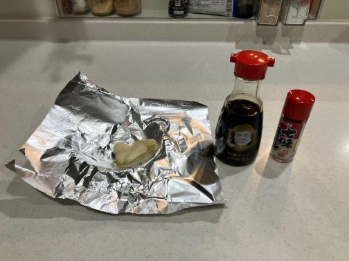 お好みの量をアルミホイルで包みトースターで焼く。ほくほくしてきたら七味唐辛子とちょっとの醤油でビールのあてにピッタリ。しかも、超簡単!