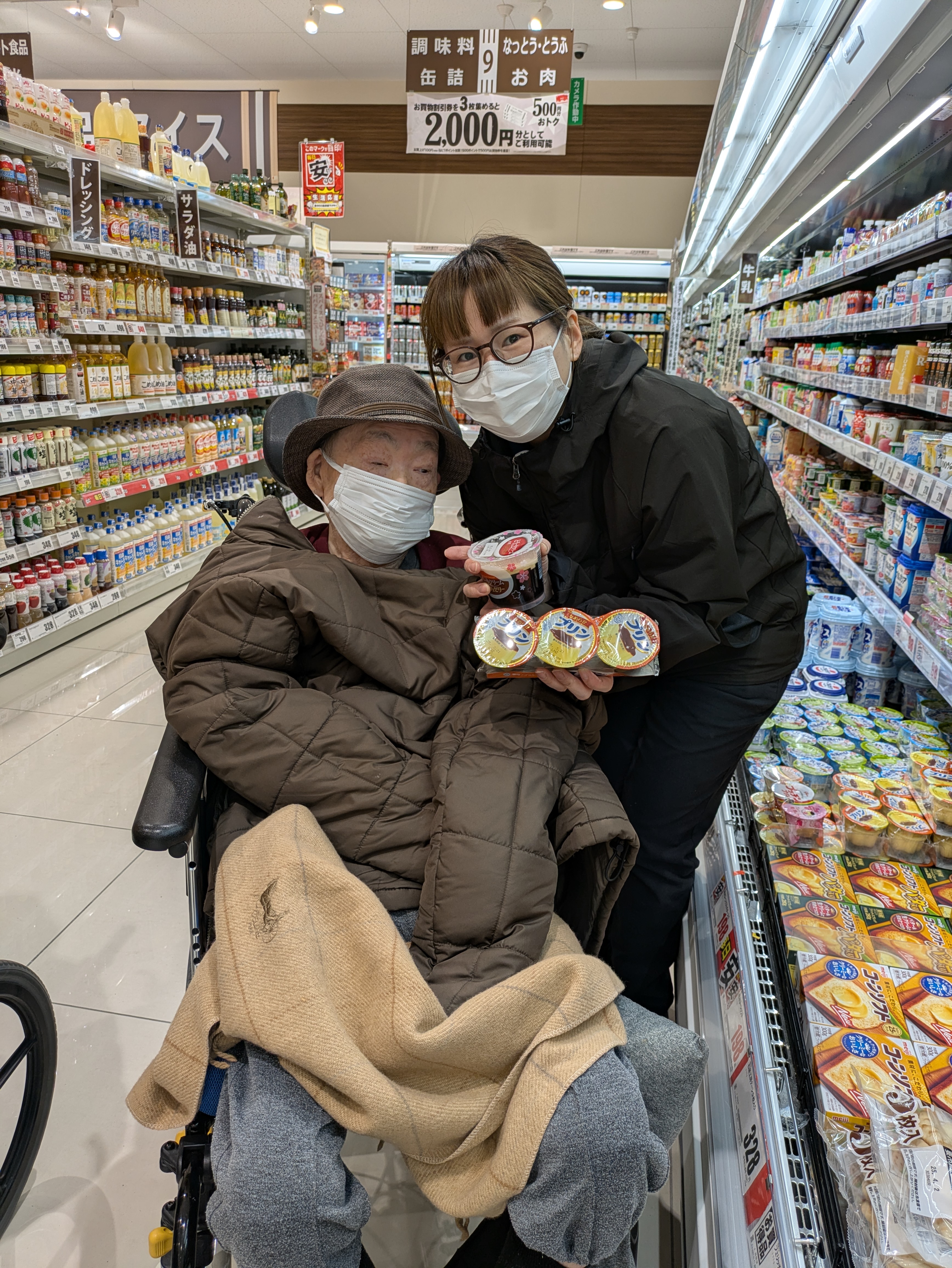 お買い物ツアー 陽風園デイサービスセンター2025年4月19日 クスリのアオキ三口新町3丁目店へ、お買い物に出かけました! 医薬品はもちろん、日用品や生鮮食品まであり、お好みのものを選ばれました。 お会計ではセルフレジに挑戦し「これは、どうするんや?」「こんなの昔はなかったよ」と、戸惑いながらお支払いをされました。 「普段、買い物には行かんから、好きな物変えて良かった!」「今晩のおかず、買ったわ♬」と、大きめの荷物をお持ち帰りされ、「楽しかった!!」とのお言葉を頂きました😊 また、行きましょうね♬