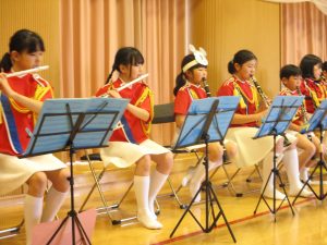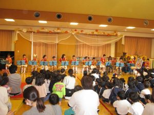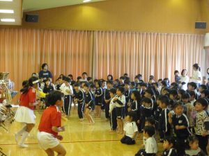 この日はスペシャルお祝いデイとなり、卒園児も在籍している大浦小学校のこばと鼓笛隊が演奏に来てくれました。パイレーツオブカリビアンや、ジャンボリミッキーなどみんなも一度は耳にしたことがある曲で一緒に手をたたいたり体を揺らしてリズムをとって楽しみました。とってもとっても素敵な進級式の一日でしたね。