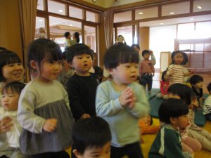 先日卒園した新1年生に見守られるなか、新しいクラスを呼ばれると元気にお返事しひとつ大きくなったことを喜びましたよ。