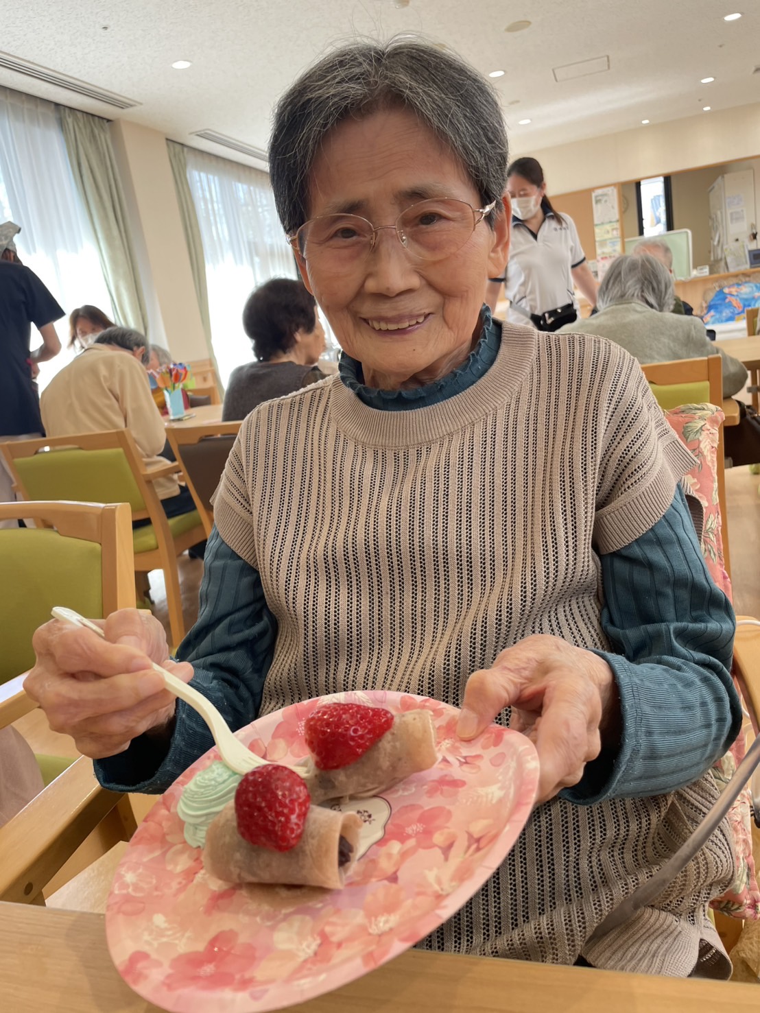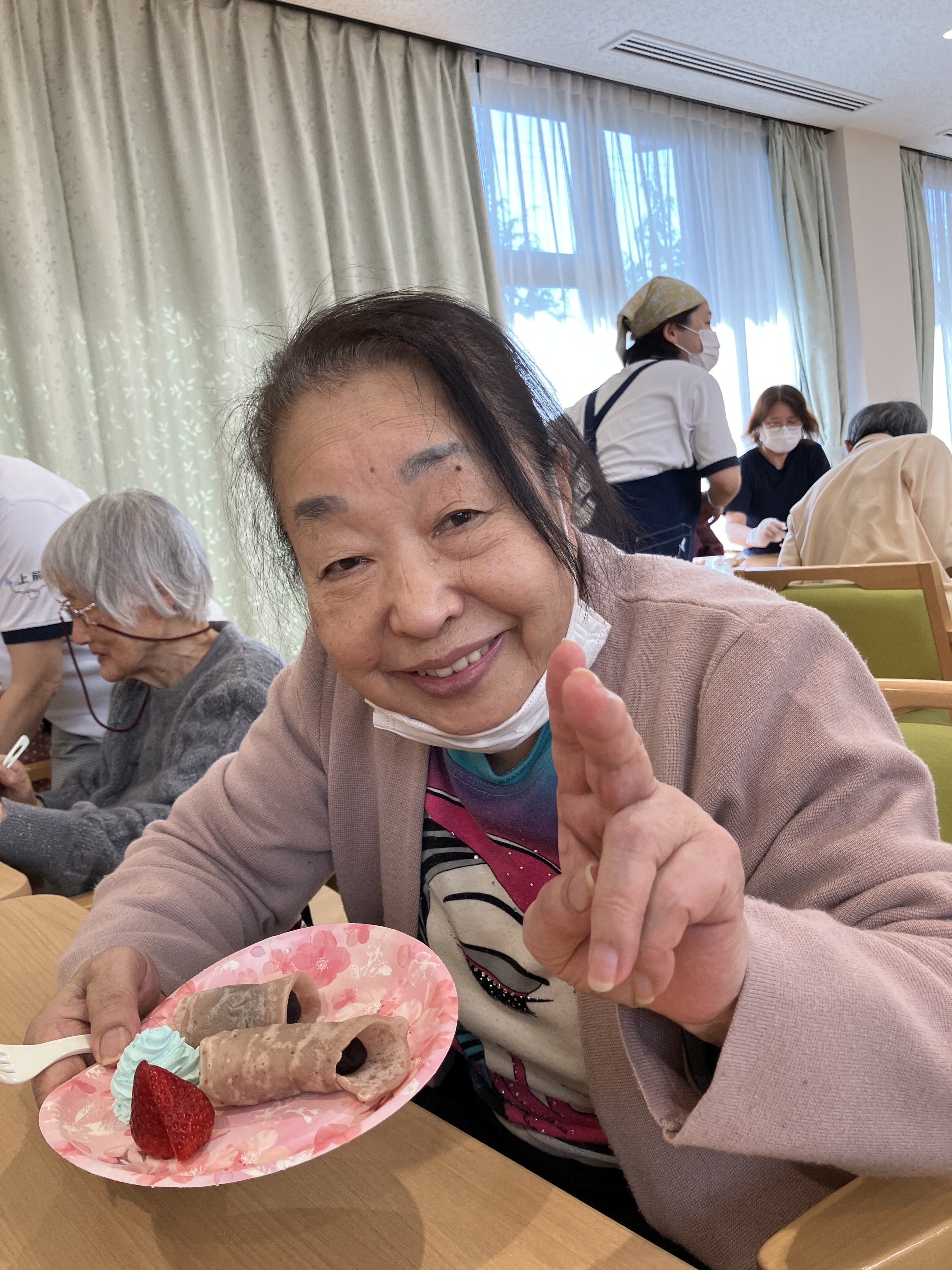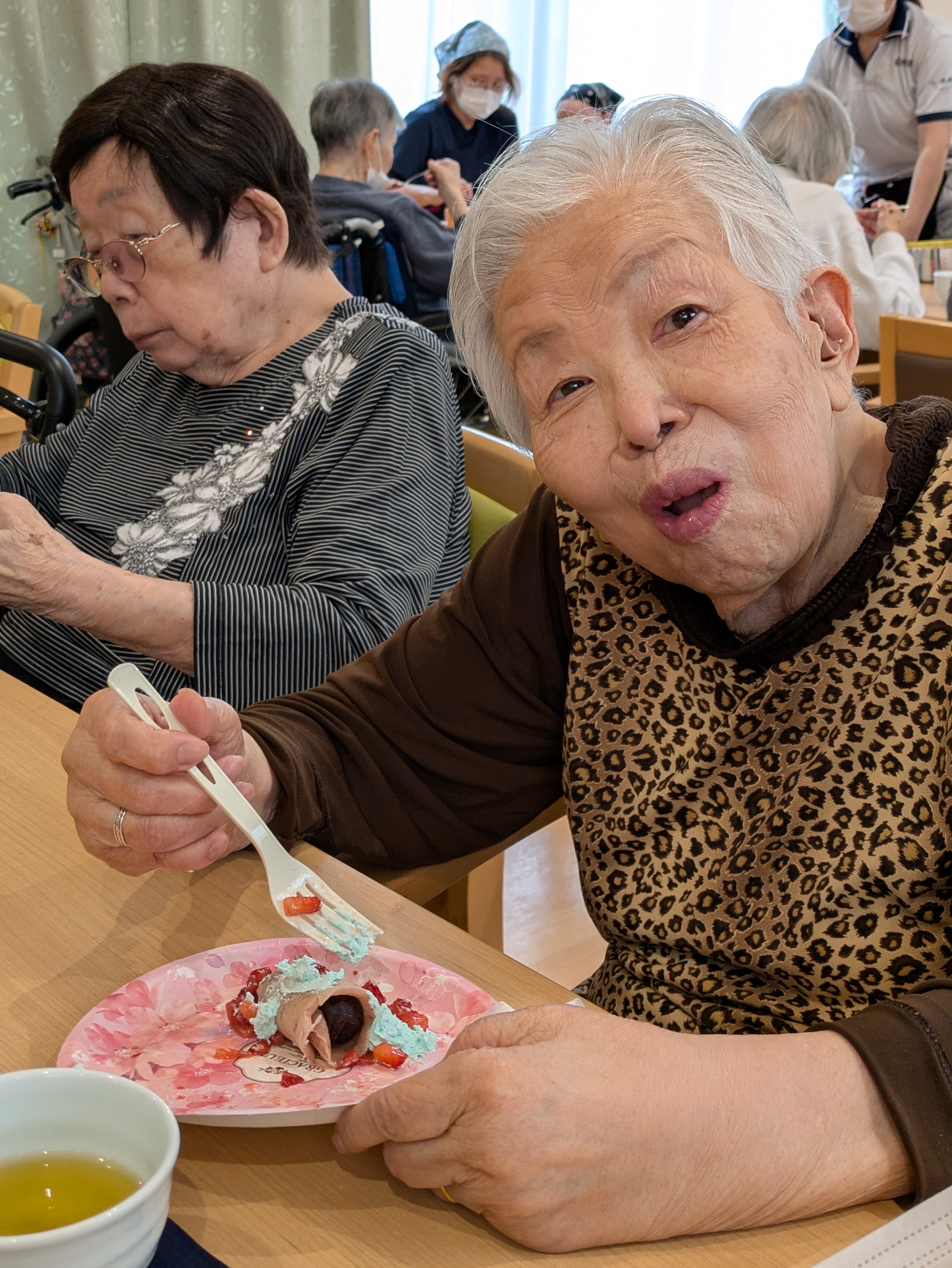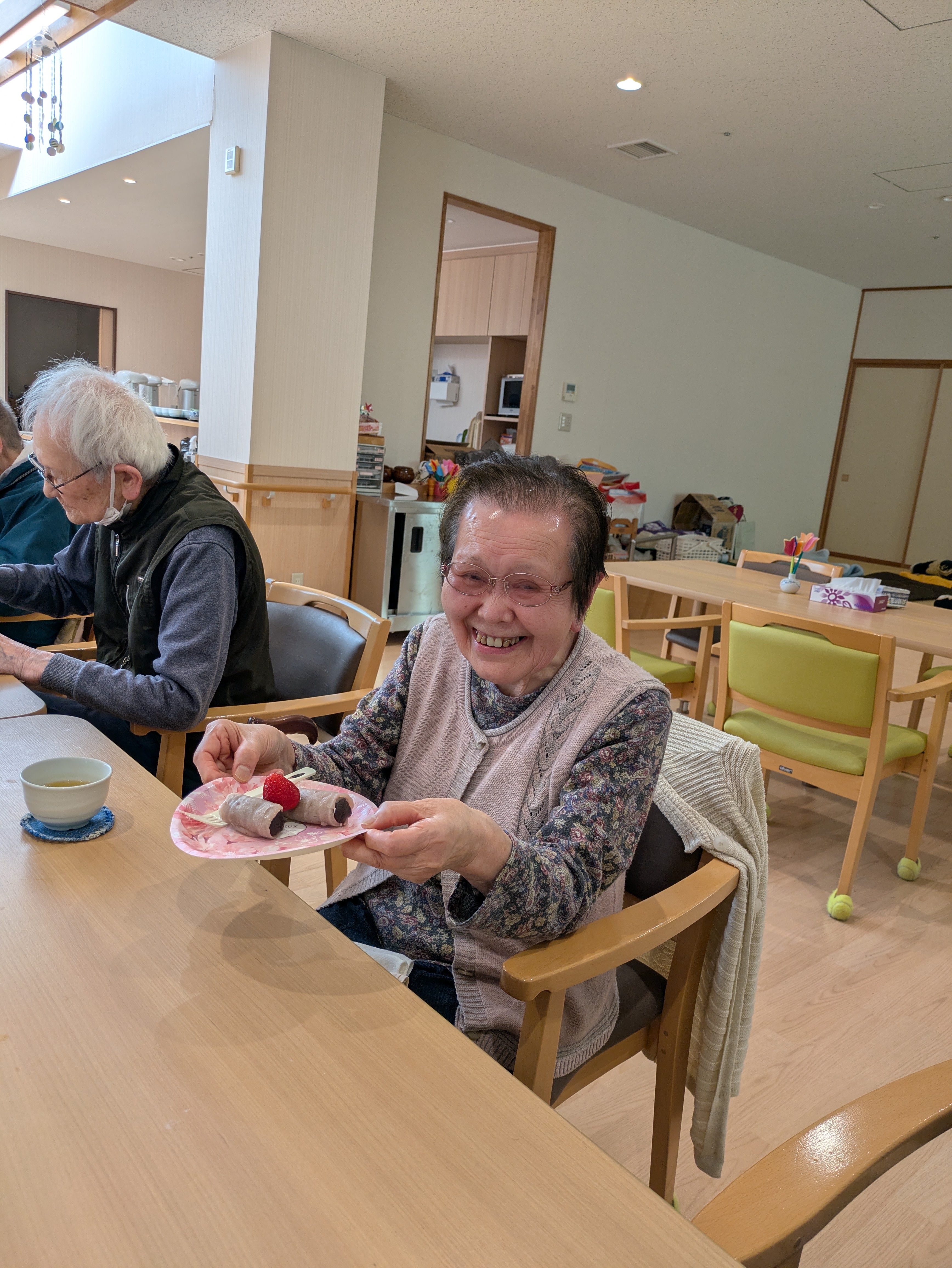 緑茶と一緒にいただき、「モチモチの焼きたての皮が最高!!」「美味しいわ~♪」の声がたくさん聞こえました😊💖