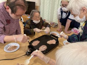 皆さん、ホットプレートを前に「どうやってするん?」「伸ばすが?」とやる気まんまん!!