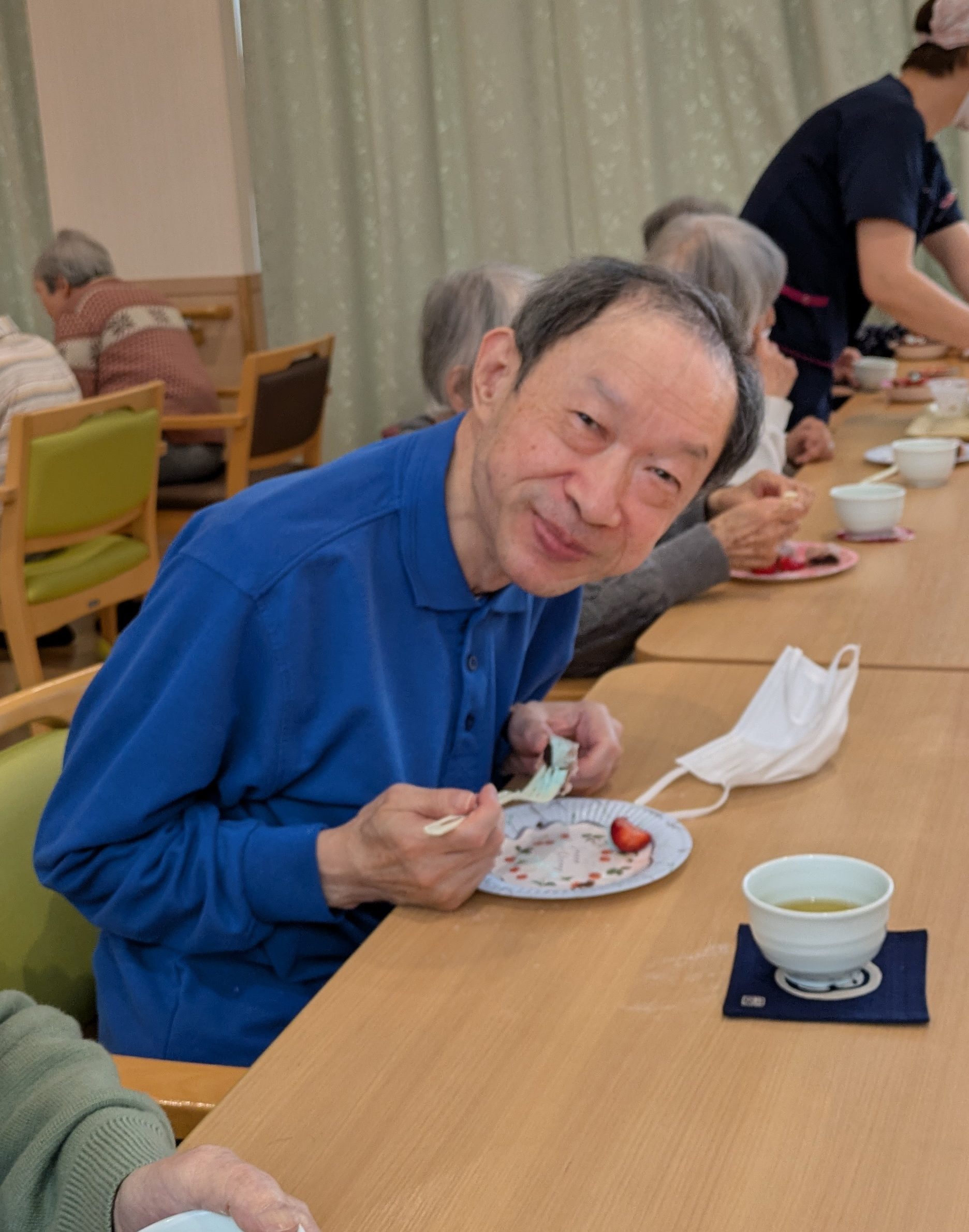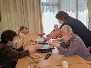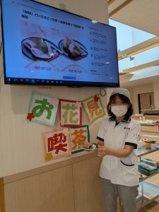 さくらの木々が青々とし、新緑が美しい時期に「お花見喫茶」を行い、“桜もち”を作りました!