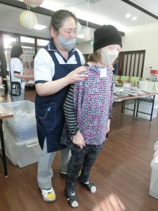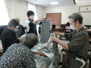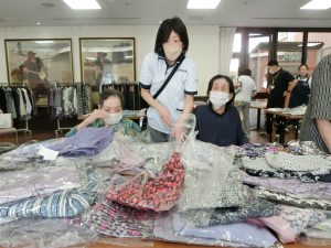 利用者様同士で、「これ似合うんじゃない?着てみ!」 「派手すぎん?」 「似合う、似合う!」