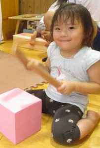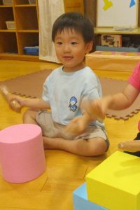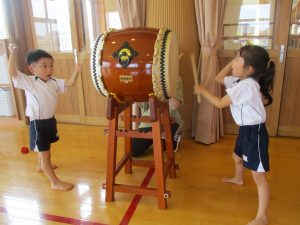 「あ!始まった!太鼓する!」と言って、園内に聞こえる太鼓の音に合わせて楽しそうな子どもたちです♪