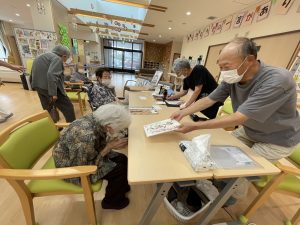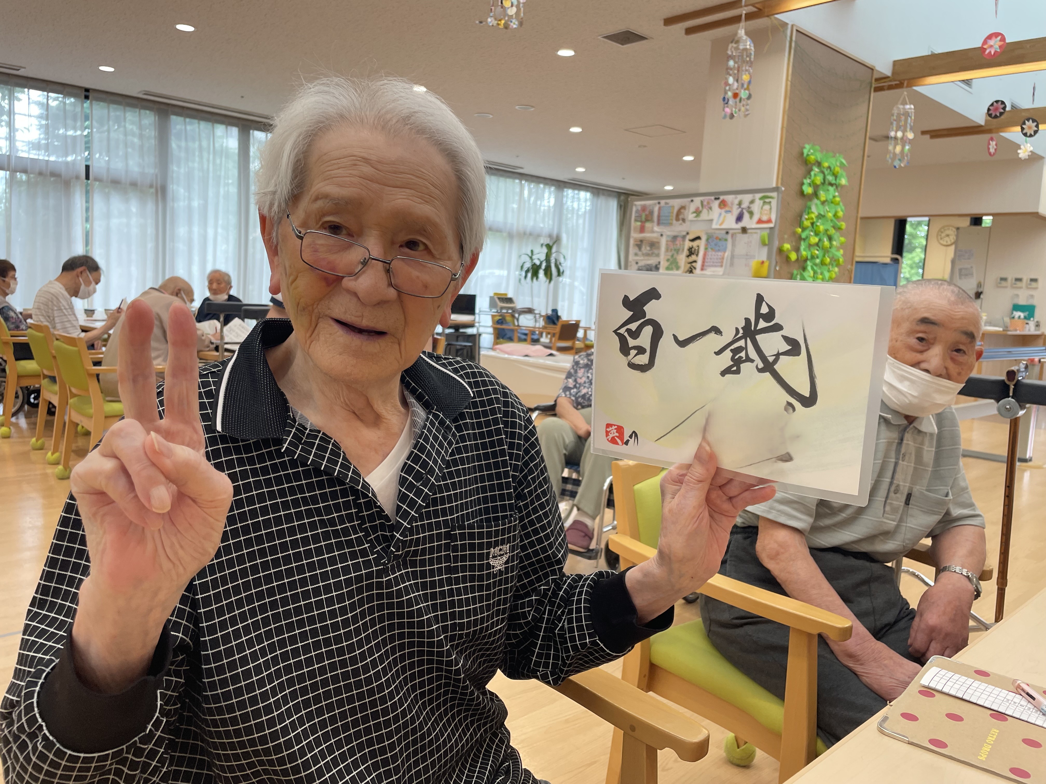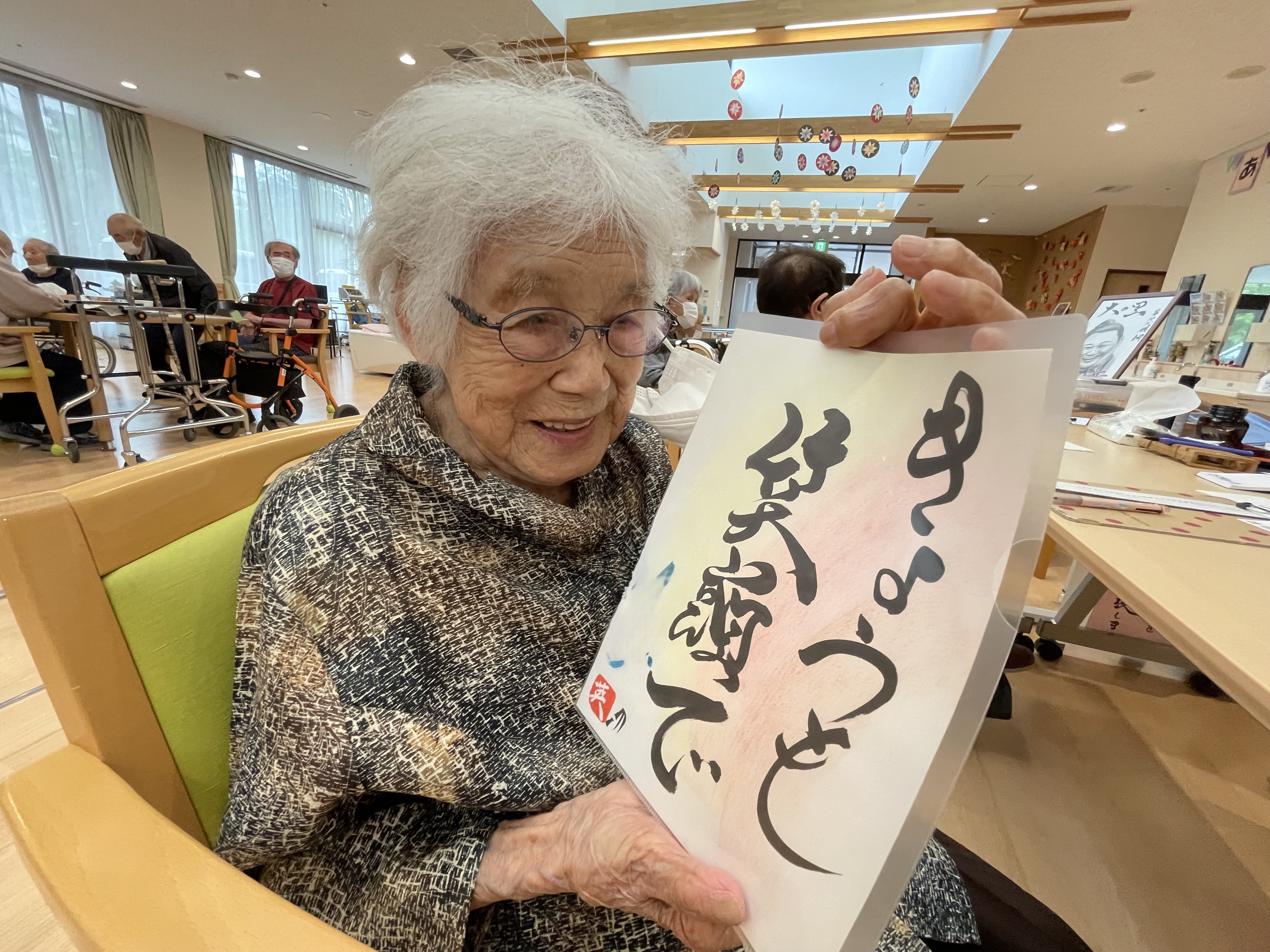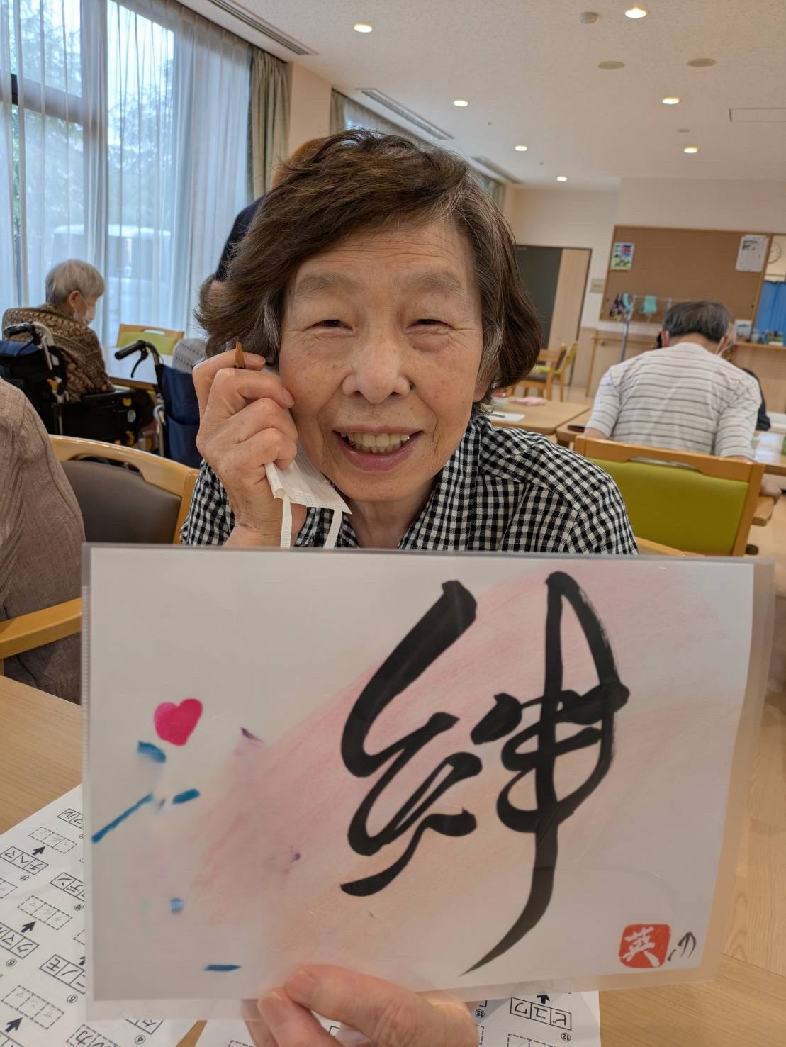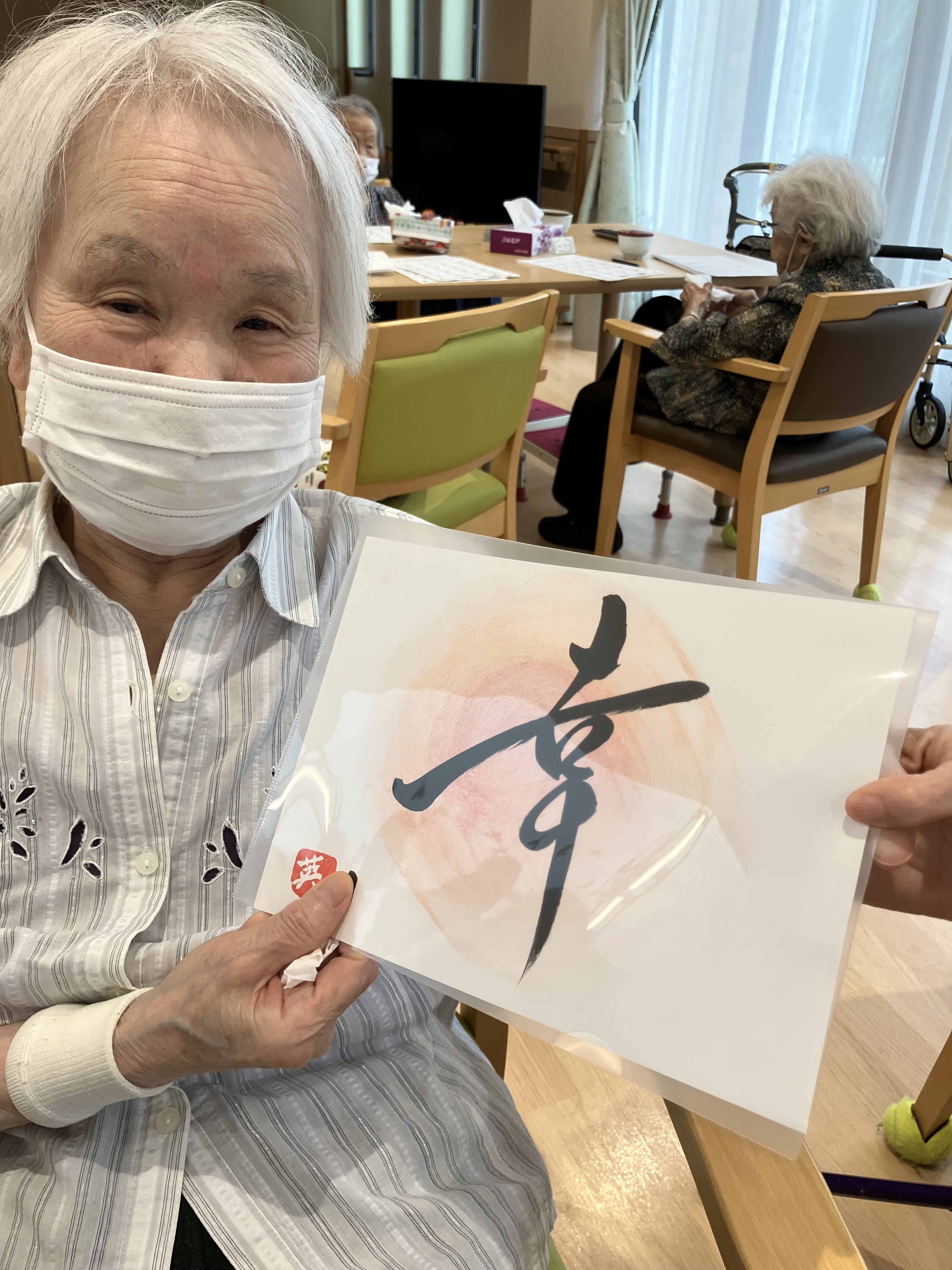 書道アート ボランティア来訪 陽風園デイサービスセンター2025年7月9日 ご縁があり、荒島英之さんに、ボランティアにお越しいただきました! 絵や書道のアート作品をいくつも製作されておられる荒島さんですが、今回は書道をご披露いただきました。 ご利用者様から好きな言葉や文字のリクエストをうかがい、その方を見たイメージで即興で書道で表現していただきましたが、力強い文字や、温かい文字、その方がまとった雰囲気を素敵に表現されており、皆さんとても喜ばれ、お顔がほころんでおられました😊💖 素敵な作品を、ありがとうございました!!