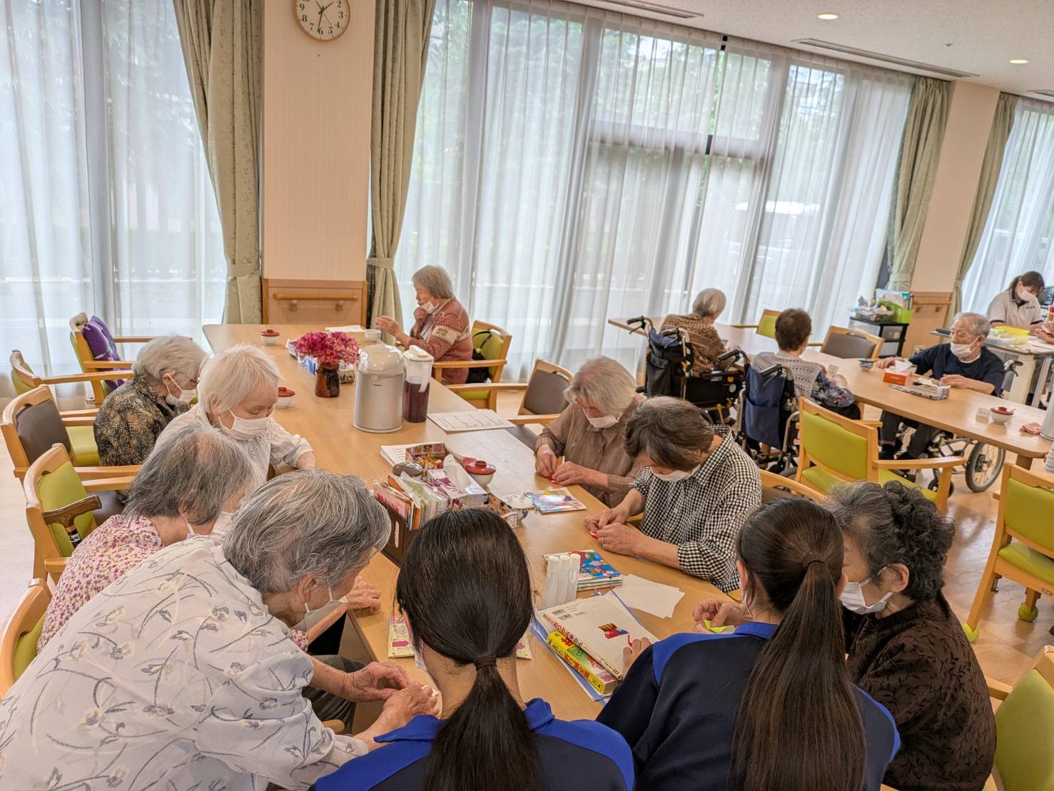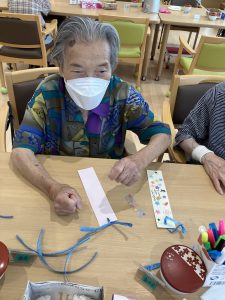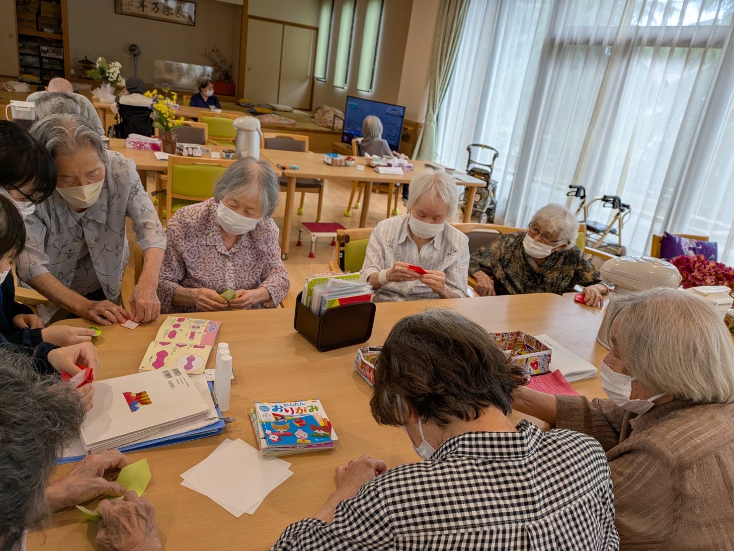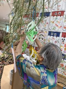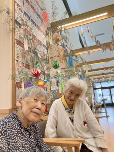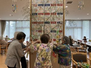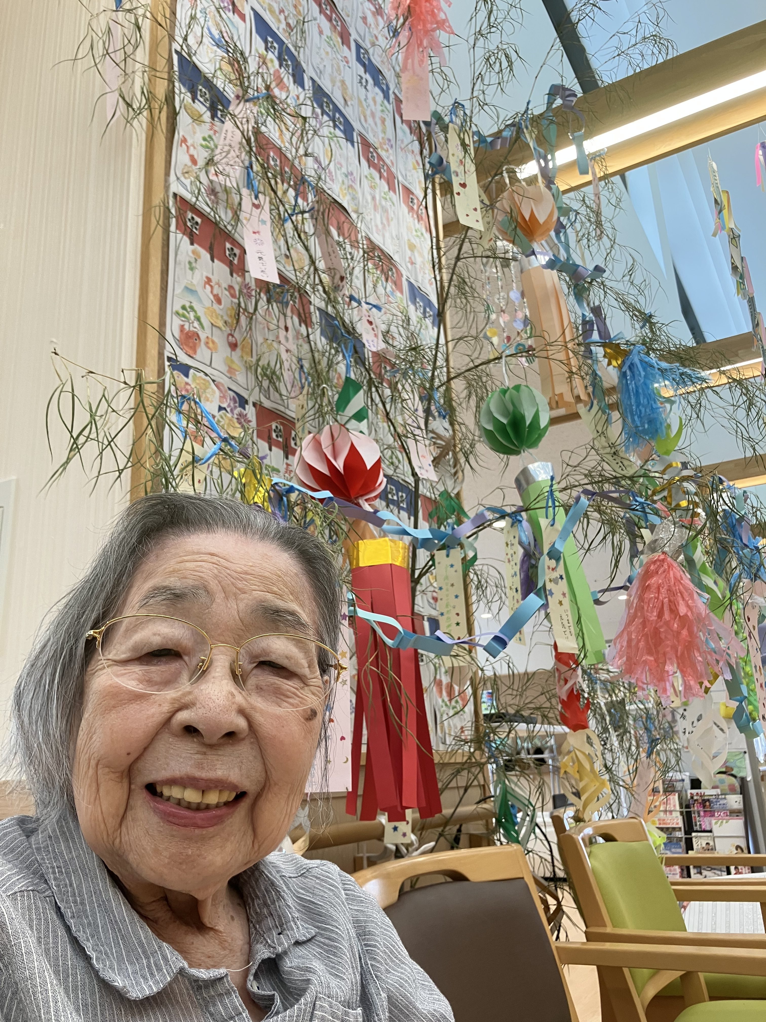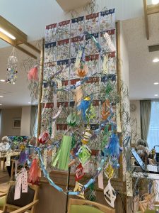 七夕 陽風園デイサービスセンター2025年7月12日 先週から、七夕飾りや短冊つくりを行い、大きい笹飾りを飾りました🎋 飾りは、職場体験の中学生や、実習生と一緒に作りました♪ 仕上げに、皆さんで飾りつけも行っていただきました!! すてきな七夕笹飾りの完成です🎋✨ 健康ですごせますように・・・✨ 元気にデイサービスへ通えますように・・・✨✨ 宝くじが当たりますように・・・💰 色々な願い事がありましたが、 皆さんの願い事が叶いますように・・・!!!