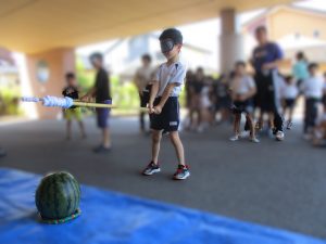みんなでスイカ割りをしました!