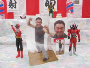 なんと、的の一部が筋肉マッチョの職員の写真になっておりました!