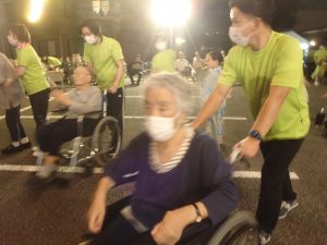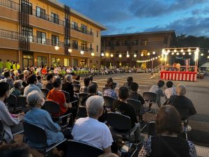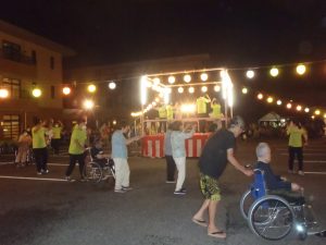 盆踊りでは、音楽に合わせて輪になり、利用者の皆様、だんだんと自然に体を動かしたり笑顔になりました!