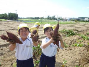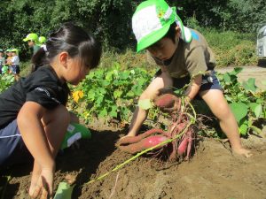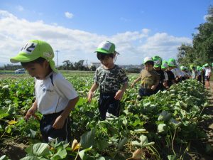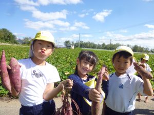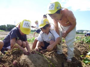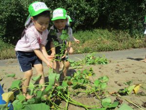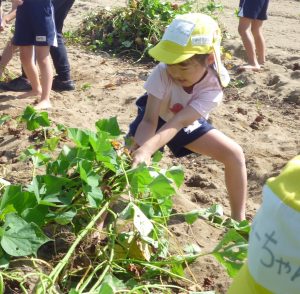 子どもたちは芋畑に入るとワクワクドキドキ…♡