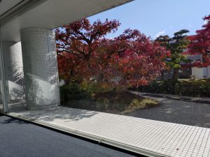 食事場所の大きな窓からは綺麗な紅葉が見えました♫