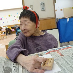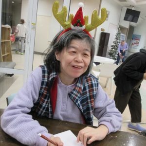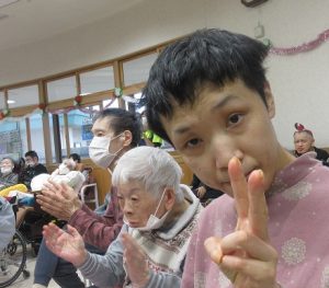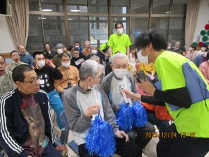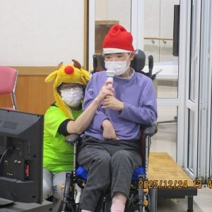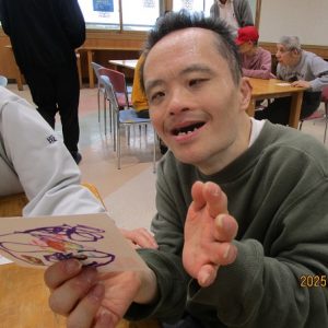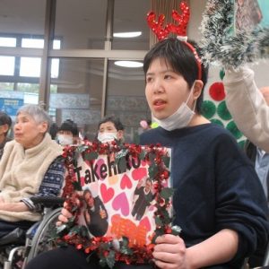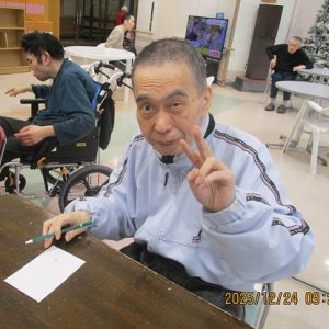 午前中は年賀状づくりを行い、サンタやトナカイのカチューシャを身につけながら、和やかな雰囲気の中で作業スタート。皆様それぞれ、日頃お世話になっている方やご家族に向けて、メッセージやデザインを一つひとつ丁寧に考え、真剣な表情で年賀状を作成されていました。