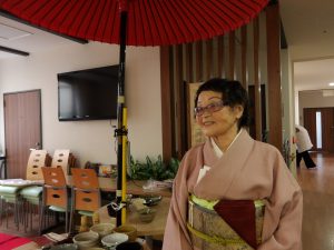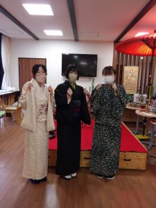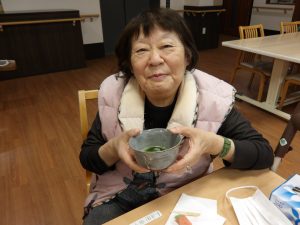 職員も着物姿に変身し、お茶の先生であった利用者様と一緒にお抹茶を点てました。