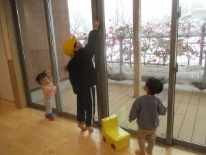 「赤ちゃん組に来たら大変や!」と分園おひさまとかぜにもヒイラギを貼り、しっかり守ってくれましたよ!
