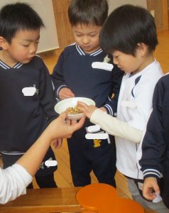 今日も朝から園内が煎り豆の香ばしい匂いに包まれています。