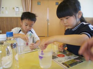 「実験っておもしろい!」「楽しかった!」と科学の心が育ったようです。