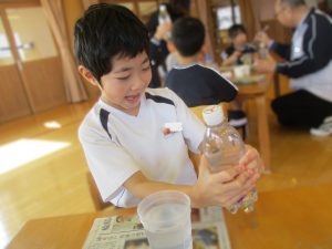 実験の後は水と空気を使ってペットボトルでミニ水族館を作りました。