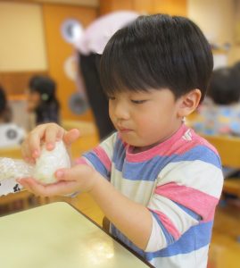 大切なおにぎりを食べるのがもったいない様子の子もいましたが、みんな喜んで食べました。
