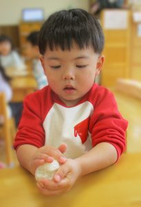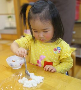 2歳児たんぽぽ組がおにぎりを作るクッキングをしました。