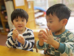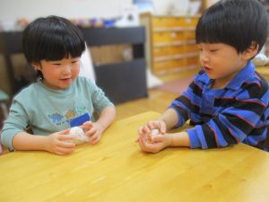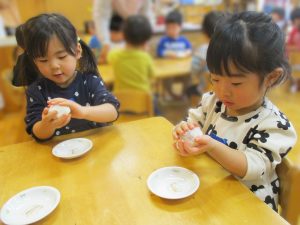 大切にそーっとにぎる子がいたり、ぎゅっぎゅっと力強く握る子がいたり。