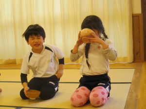 みずきこども園では午後から年長児ひまわり組のお茶会がありました。