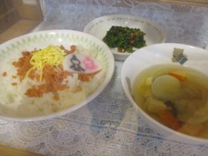 おやつの花形クッキーが色とりどりでかわいく、子どもたちも喜んでいました。